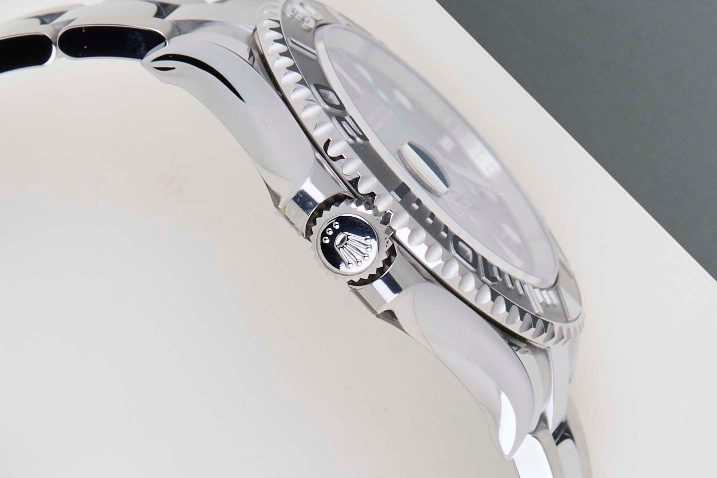 Diese Rolex Yacht-Master 40 ist in neuem und ungetragenem Zustand und wird mit den originalen Rolex Garantiepapieren und der Box geliefert. Außerdem hat die Uhr noch eine internationale Rolex Garantie bis Juni 2029.