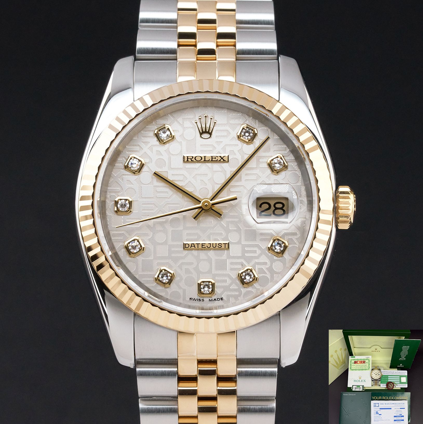 Rolex Datejust, 116233, 36mm, 2004, Two-Tone, Silver Jubilee Diamond dial, Fullset, 1y warranty