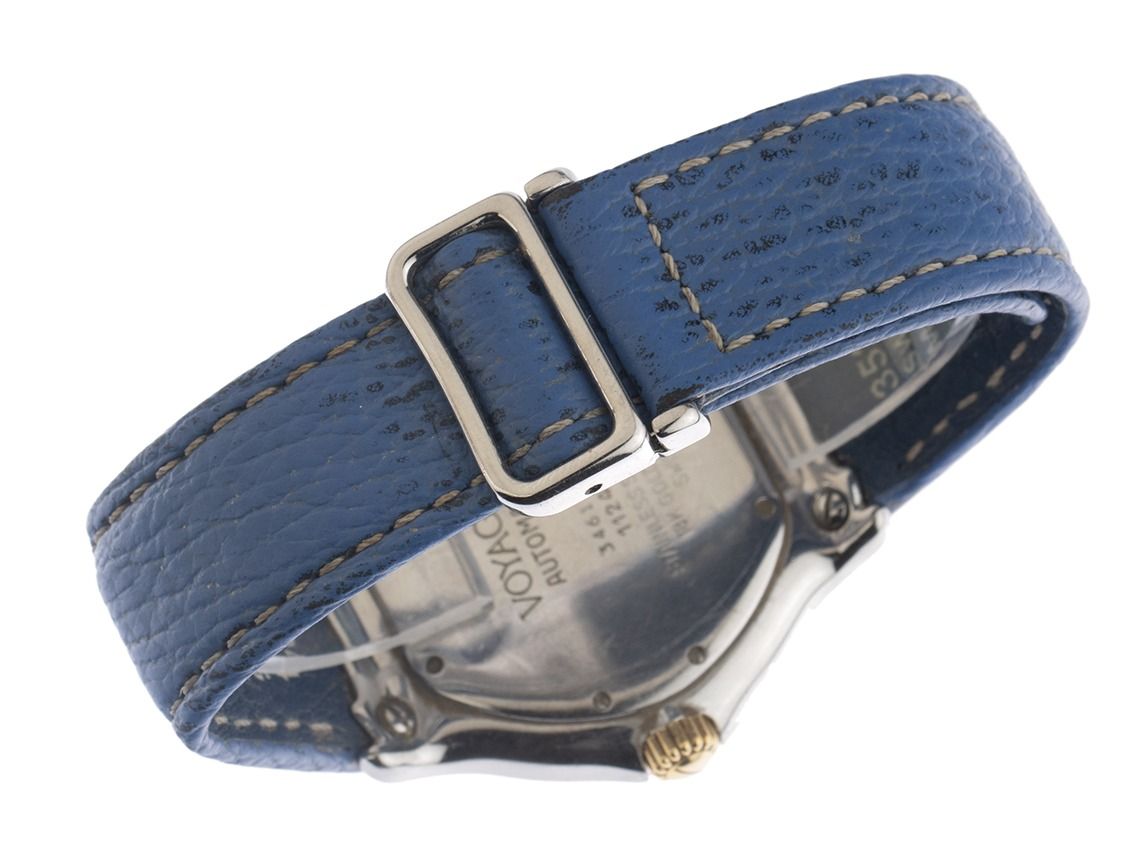 Ebel Voyager Weltzeituhr GMT 18kt Gelbgold Automatik Armband Leder Gehäuse Edelstahl poliert und 5-fach verschraubt. Gehäusedurchmesser ohne Krone 38mm, Gehäusehöhe 9,7mm. Lünette 18kt Gelbgold geriffelt und satiniert mit gravierter Zeitzonen-Skala, beidseitig drehbar. Armband Leder blau mit Ebel Faltschließe Edelstahl, Anstoßbreite 20mm. Zifferblatt weiß mit römischen Ziffern und Edelstahl Zeigern. Uhrwerk Automatik, Kaliber Ebel 124 mit 21 Edelsteinen. Anzeige von Stunde, Minute und Sekunde über Zeiger aus der Mitte mit Sekundenstopp zur sekundengenauen Einstellung der Uhrzeit. Datumsanzeige bei 3 Uhr, zweite Zeitzone (GMT) ablesbar über Lünette und gekröpfter 24 Stunden Skala. Saphirglas kratzfest. Krone geriffelt mit Flankenschutz. Boden Edelstahl 8-fach verschraubt und graviert. Gewicht der Uhr inklusive Armband 75g. Referenznummer: 1124913-3001, Gehäusenummer: 34612XXX, ID: KW178920000226H-2800, Artikelnummer: 10000084740. Mit Gangkontrolle und kompletter äußerlicher Aufarbeitung von Februar 2026. Original Ebel Box mit Umkarton und Garantie Papiere von Juli 1998 sowie Beschreibung und Watchregister Auszug von Februar 2026, The Watch Register Zertifikat / ohne Eintrag (Internationale Datenbank für verlorene oder gestohlene Uhren), Full Set. Superschnäppchen, aus erster Hand, sehr guter Zustand. Lieferzeit sofort. Inklusive certified pre owned Siegel / Uhrenpass mit einem Farbbild, der genauen Beschreibung sowie dem Wiederbeschaffungswert der Uhr über 2800,-€ und 1000 Tage Garantie ab Kaufdatum.