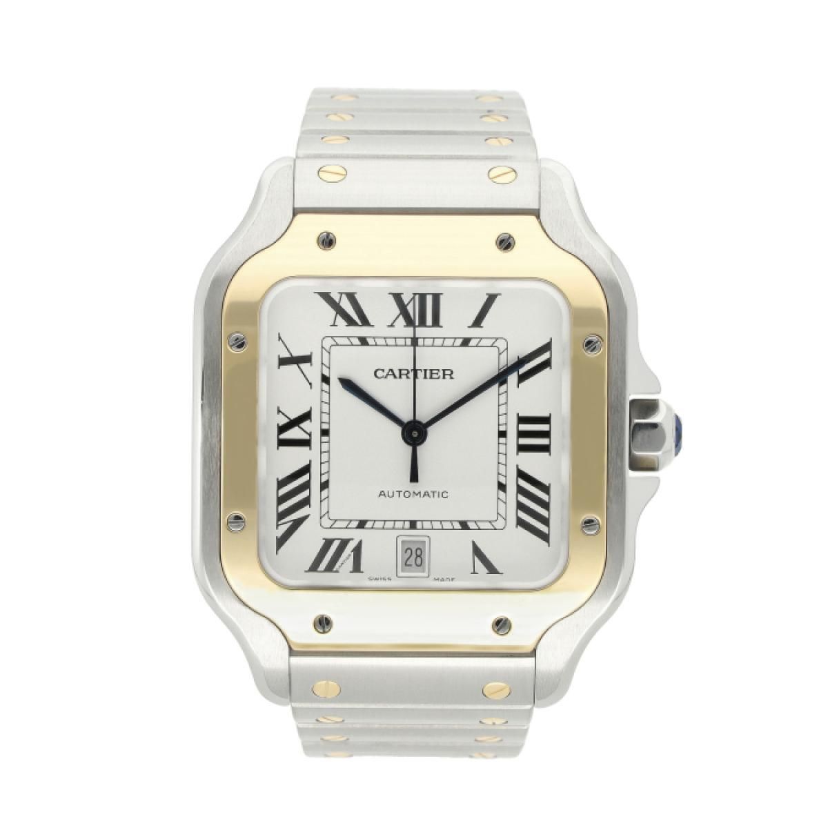 Cartier Santos aus 2018 mit einem 47 mm Gehäuse aus Gold/Stahl und doppelter Faltschließe. Diese Herren Cartier Uhr ist in sehr gutem Zustand.