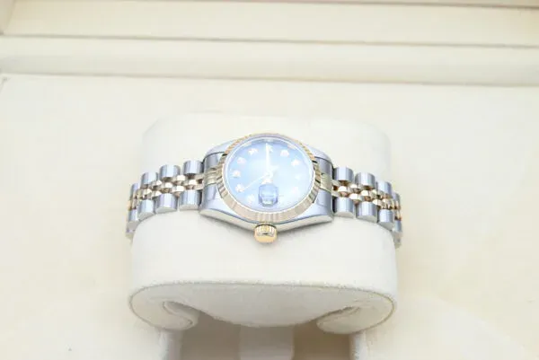Rolex Lady-Datejust 69173 with the blue diamond dial from 1994 in excellent condition, including the original box and papers.All of our watches have been thoroughly checked by our own watchmaker and serviced when needed.