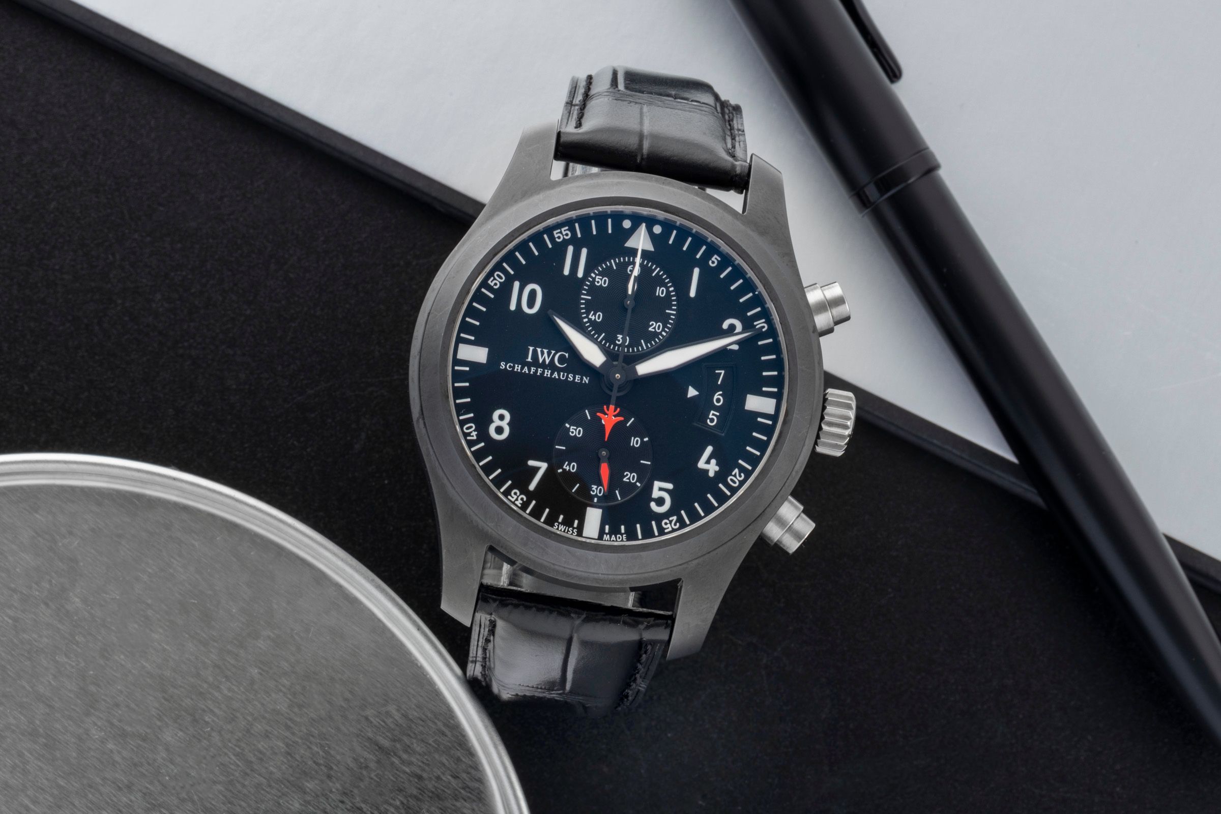 Alternative title: IWC IW388001 Pilot’s Watch Top Gun Chronograph; IIWC Pilot Chronograph Top Gun Keramik Automatik Herrenuhr Ref. IW388001 B&P [2600521]