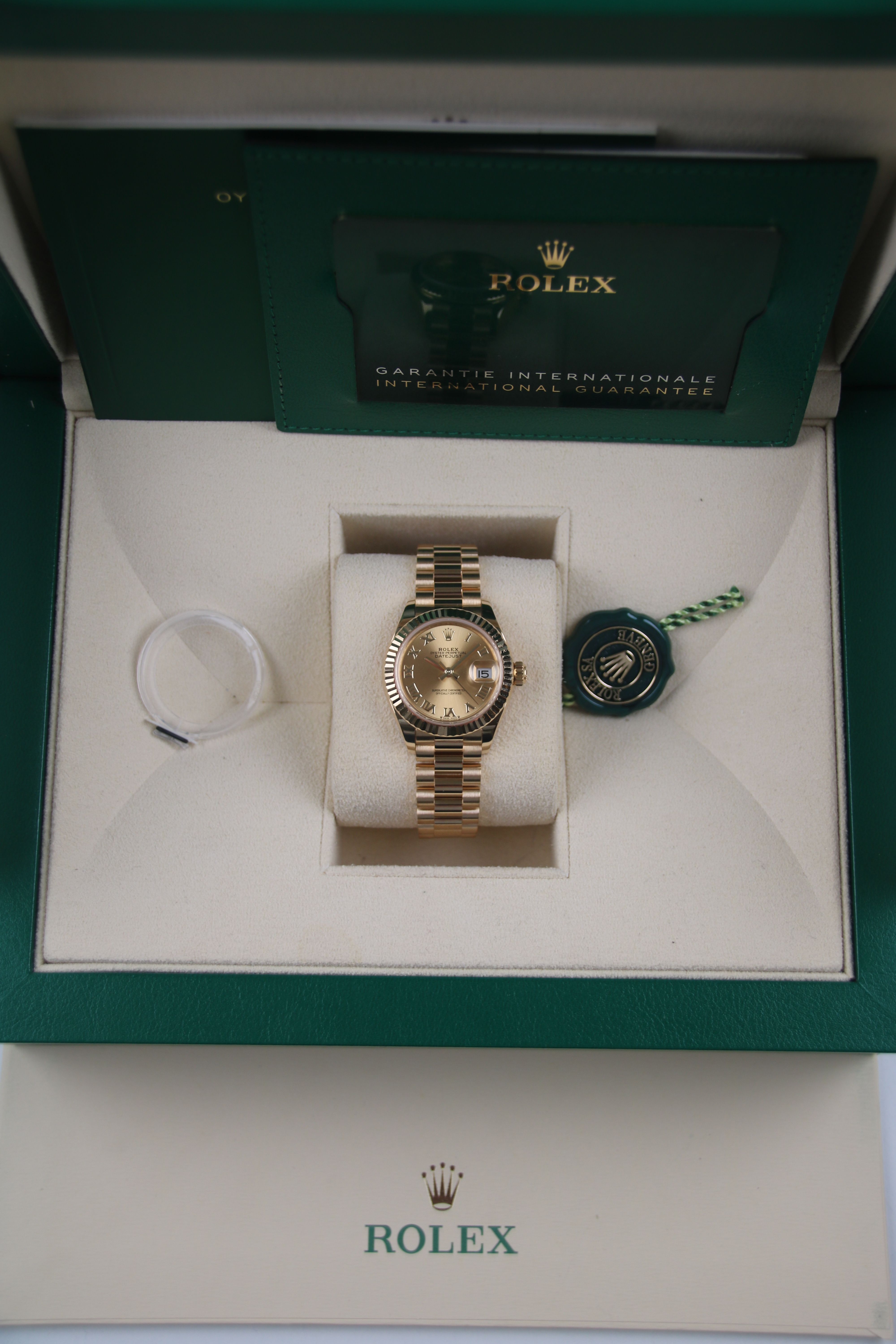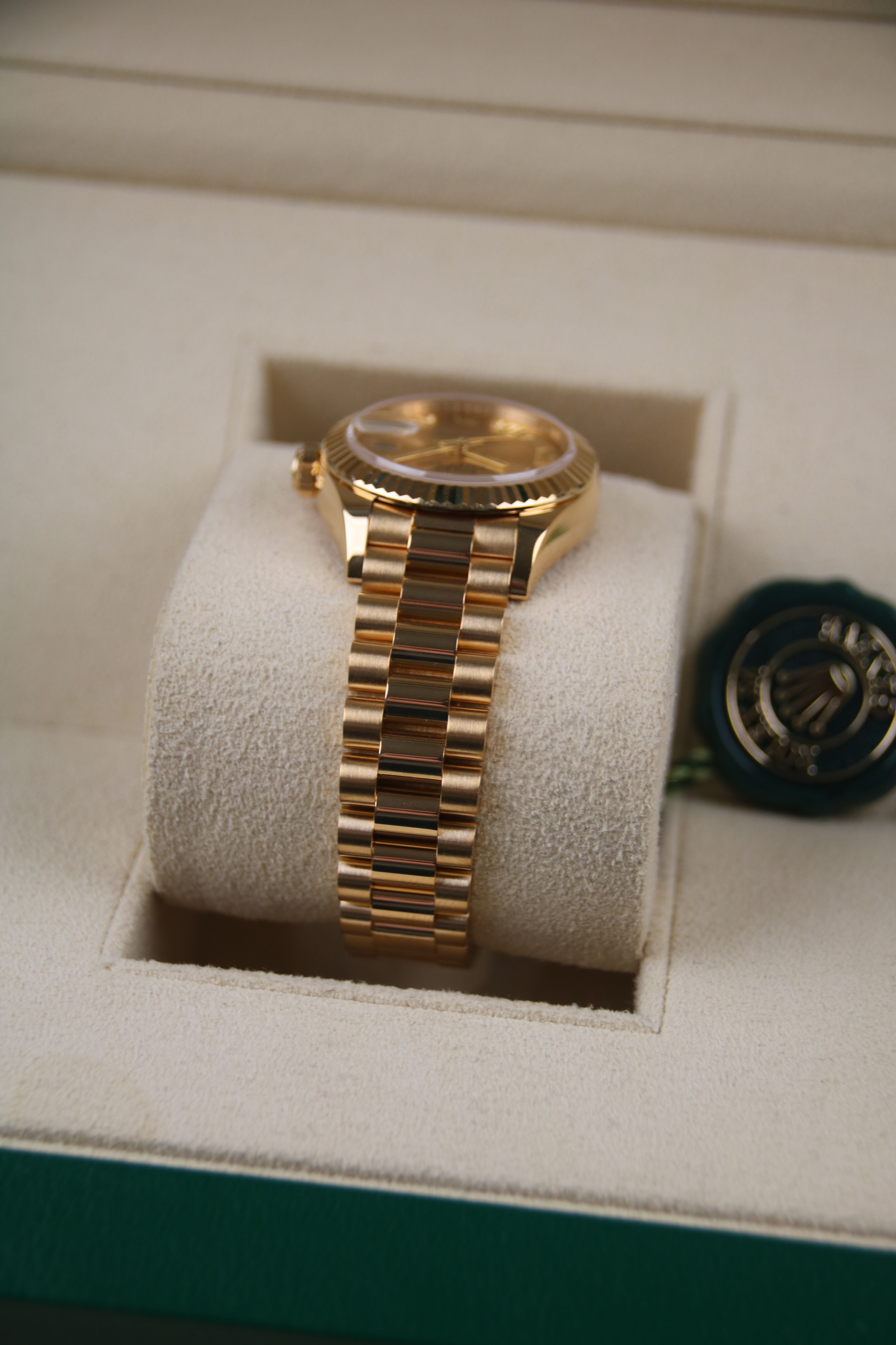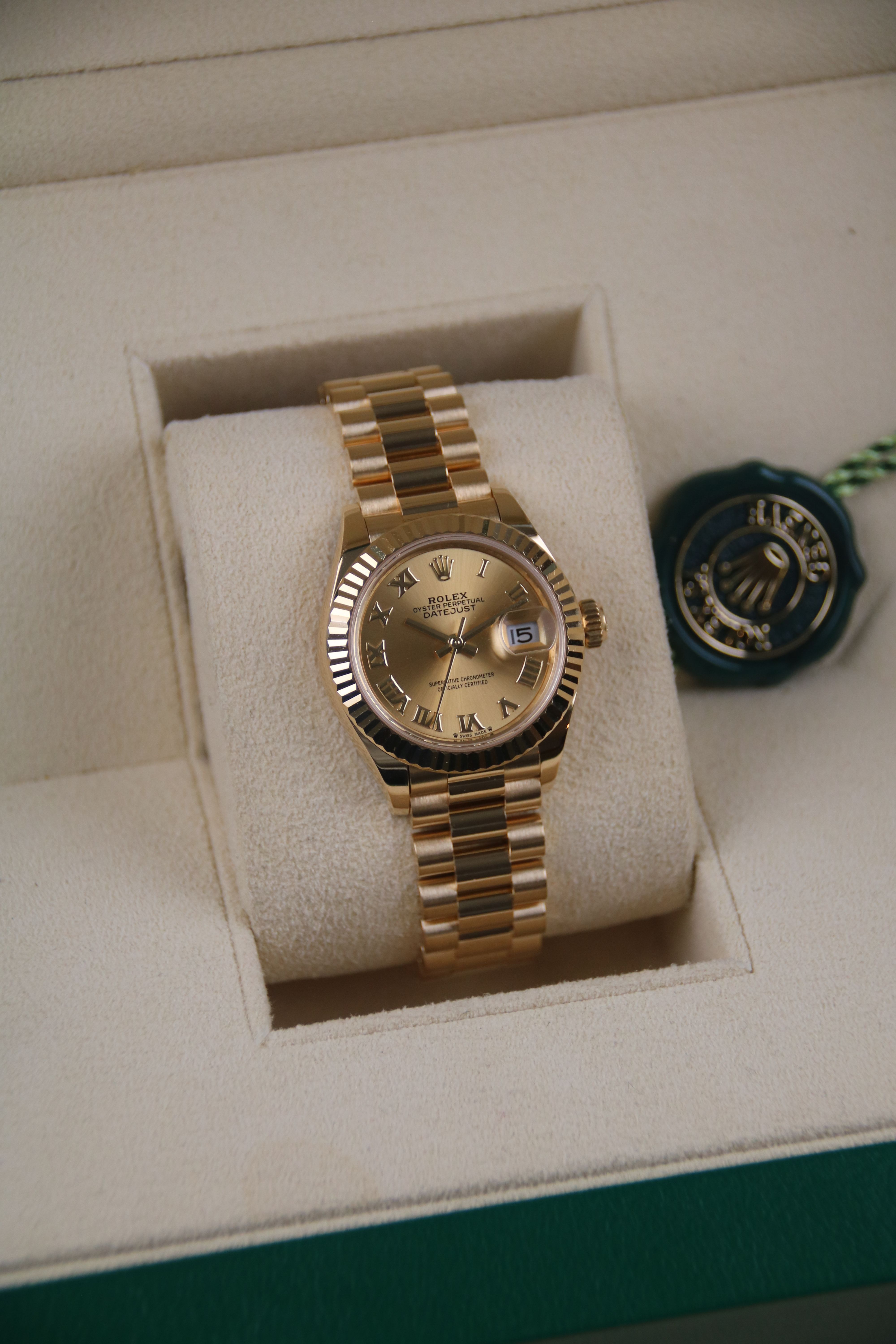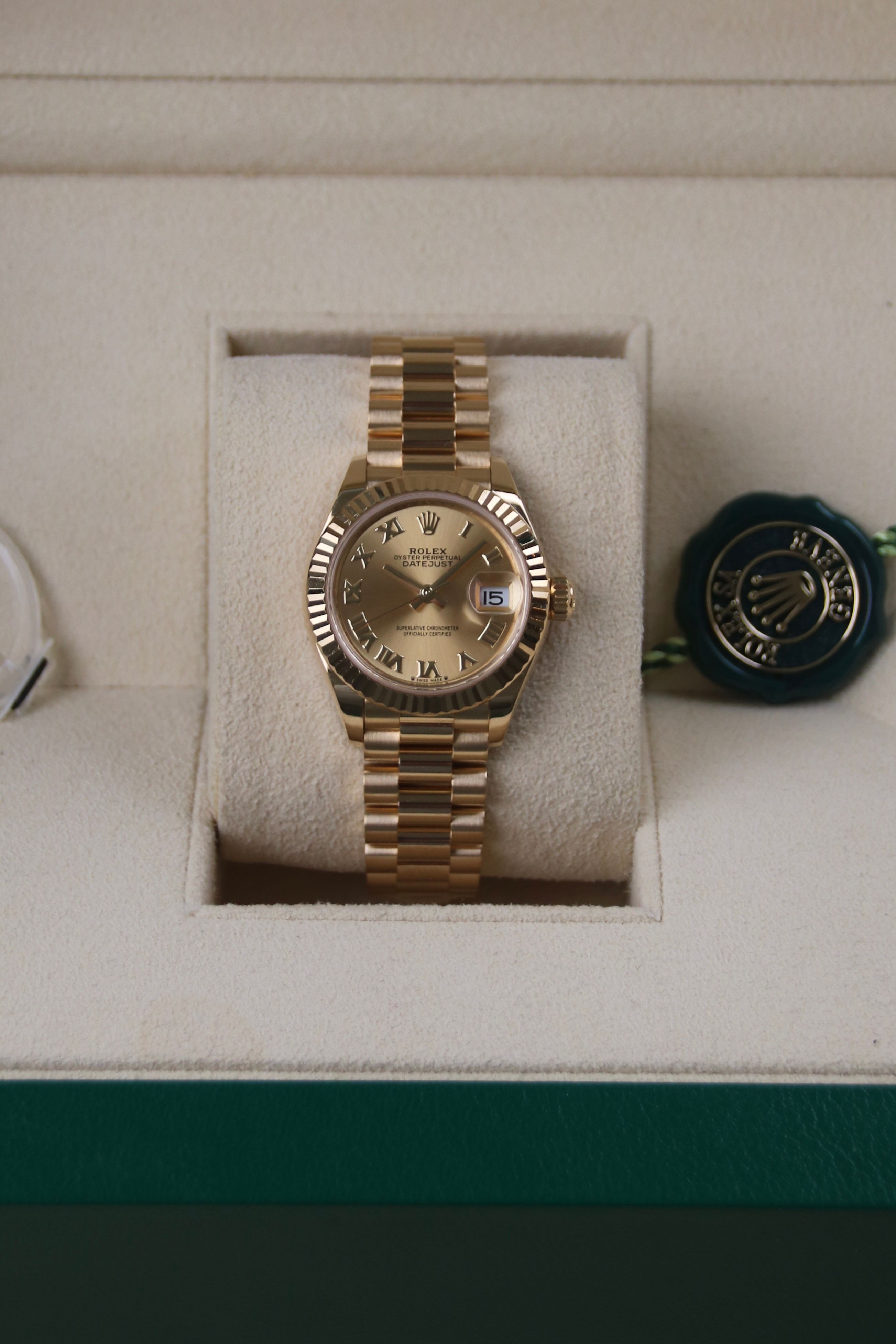 Zu verkaufen ist eine Datejust 28 aus Gelbgold, mit der aktuellsten Referenz 279178. Die Uhr kommt als komplettes Set, einschließlich Originalbox, Papiere und vollständigen Gliedern usw.