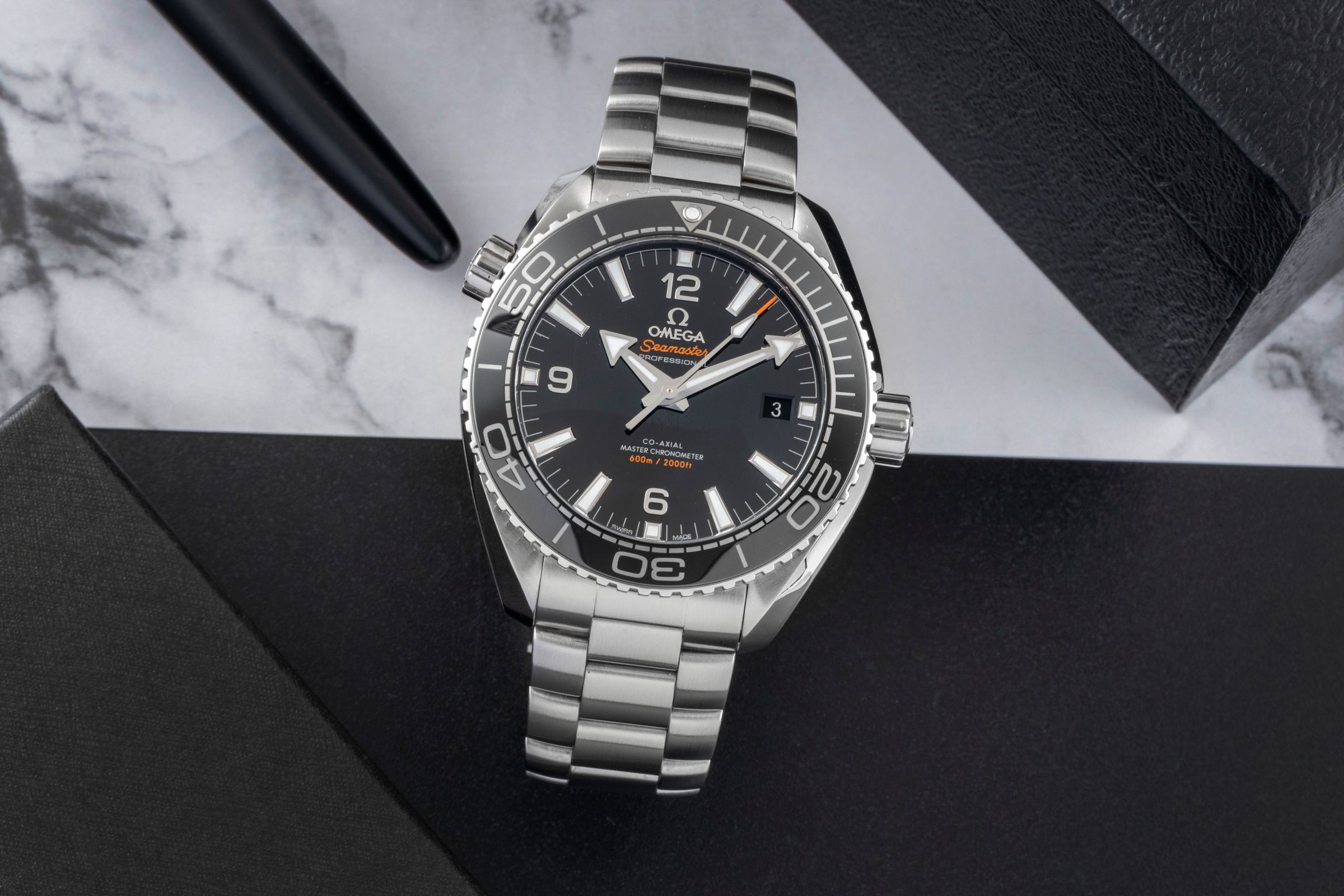 Alternative title: Omega 215.30.44.21.01.001 Seamaster Planet Ocean 600M Co-Axial 43.5 Master Chronometer Stainless Steel / Black / Bracelet; Omega Seamaster Planet Ocean Stahl Automatik Herrenuhr 215.30.44.21.01.001 B&P [2600507]