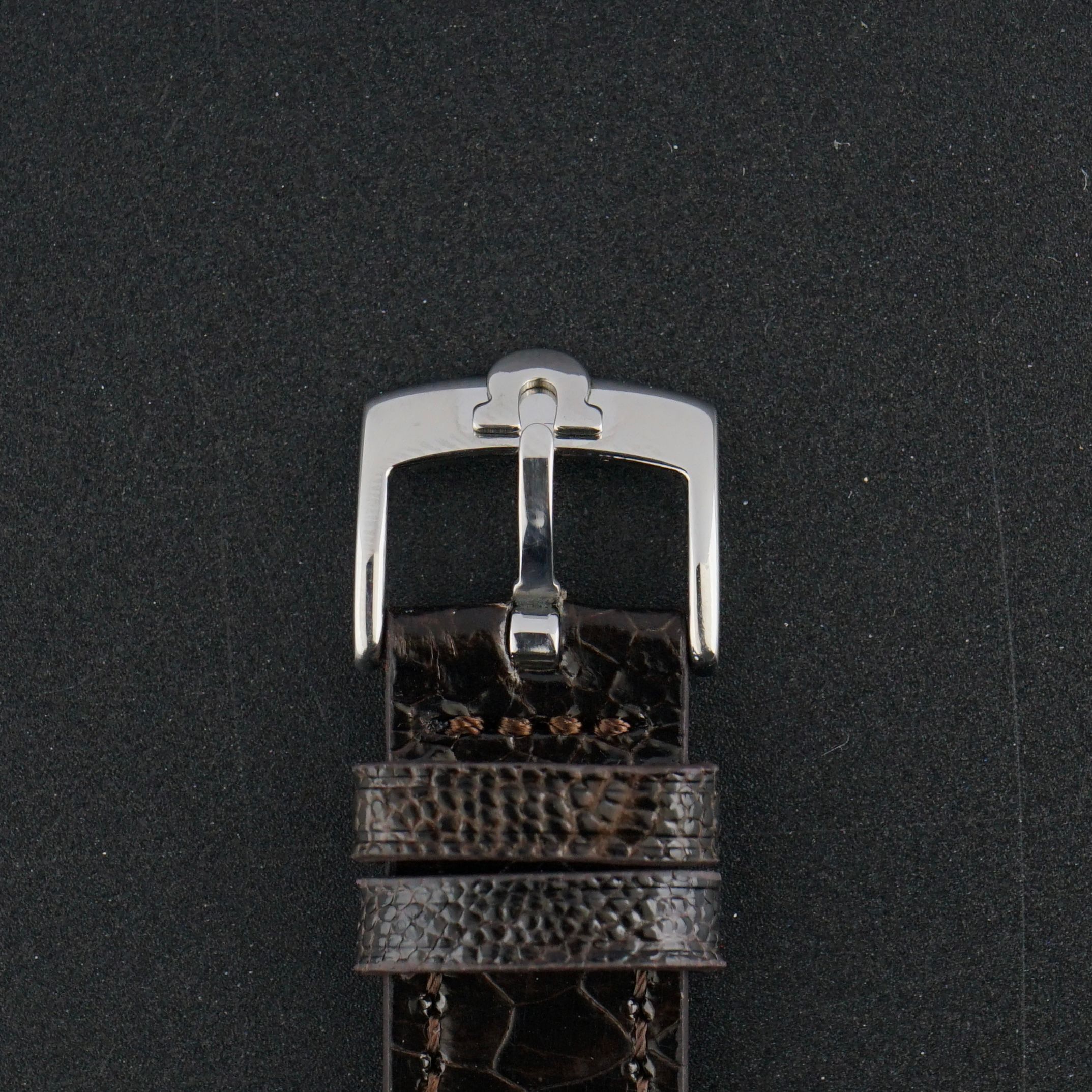 Strap: A grade III brown leather strap with crocodile motif. (Fits a 12 to 20cm wrist)