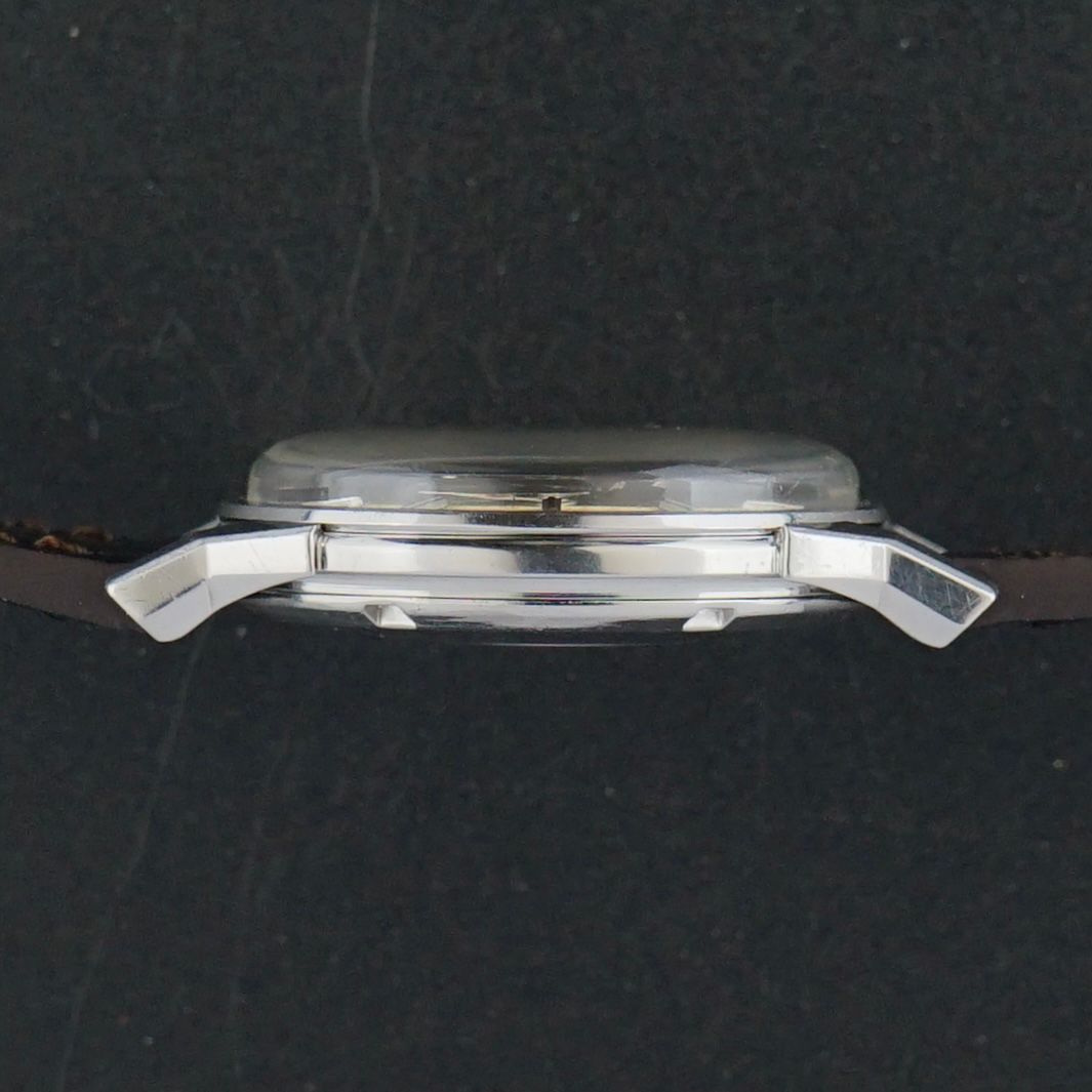 We have paired this watch with a grey brown leather strap with crocodile motif, which complements the watch very well. Overall condition is great, an exceptional vintage dress watch.