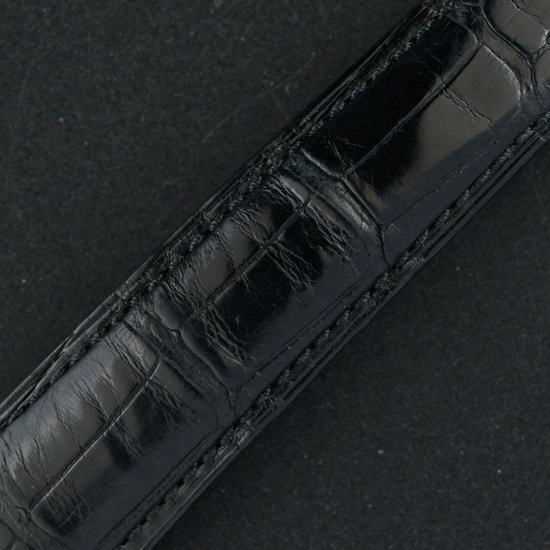 Armband: Das originale schwarze Omega Lederarmband mit Krokodilprägung und die Omega Faltschließe. (Passt für ein Handgelenk von 14 bis 20cm)