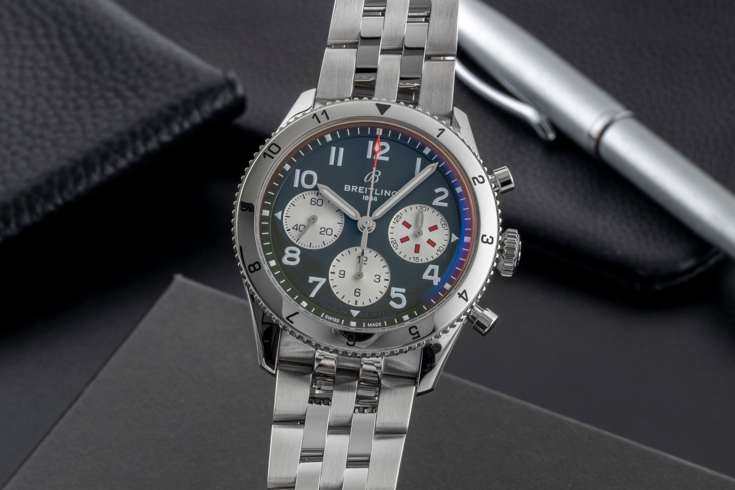 Alternativtitel: Breitling A233802A1L1A1 - Klassische AVI Curtiss Warhawk Grün/Stahl Ø42 mm; Breitling Klassische AVI Chronograph Curtiss Warhawk Ref. A233802A1L1A1 B&P 2025 [2600840]