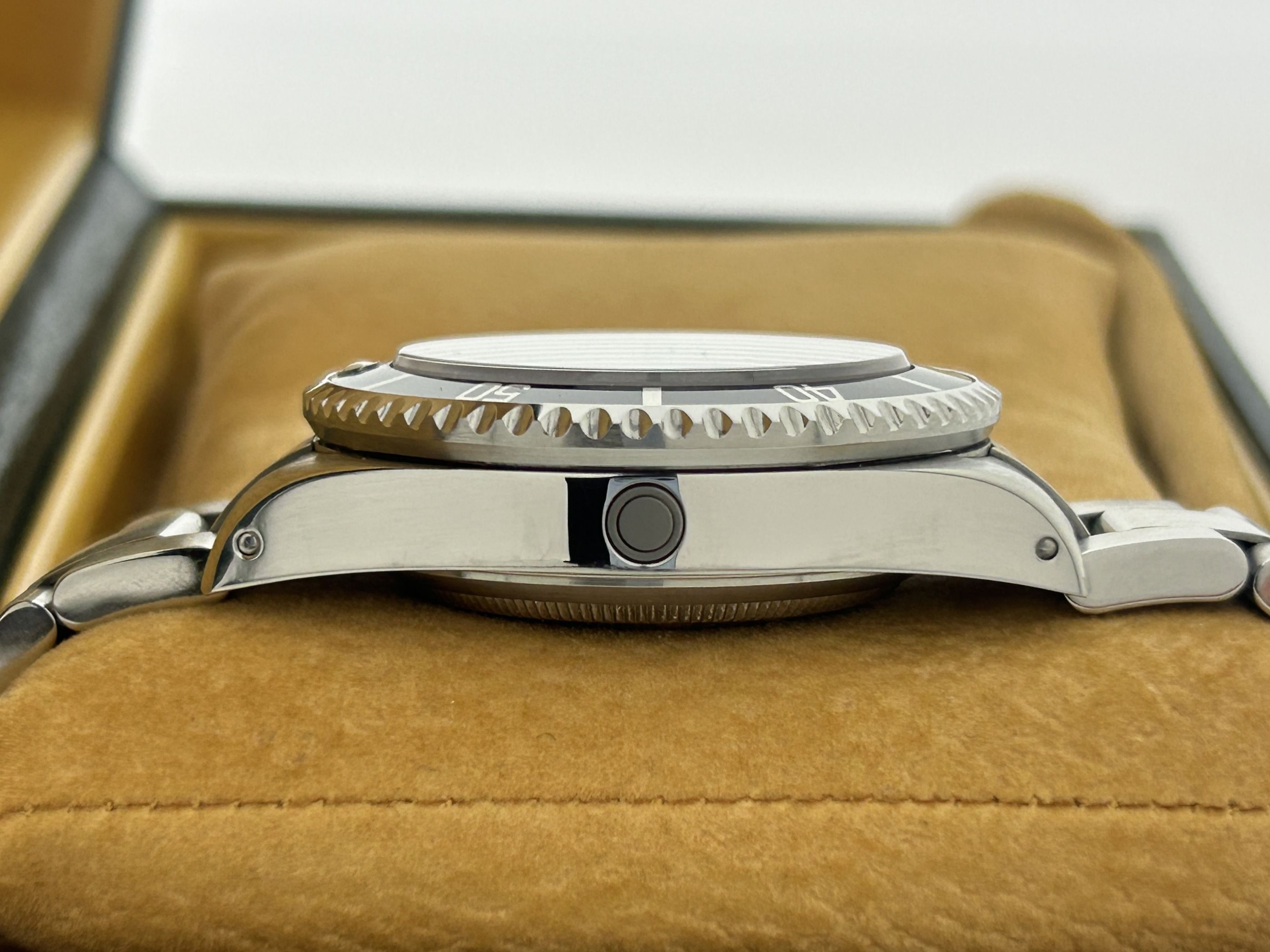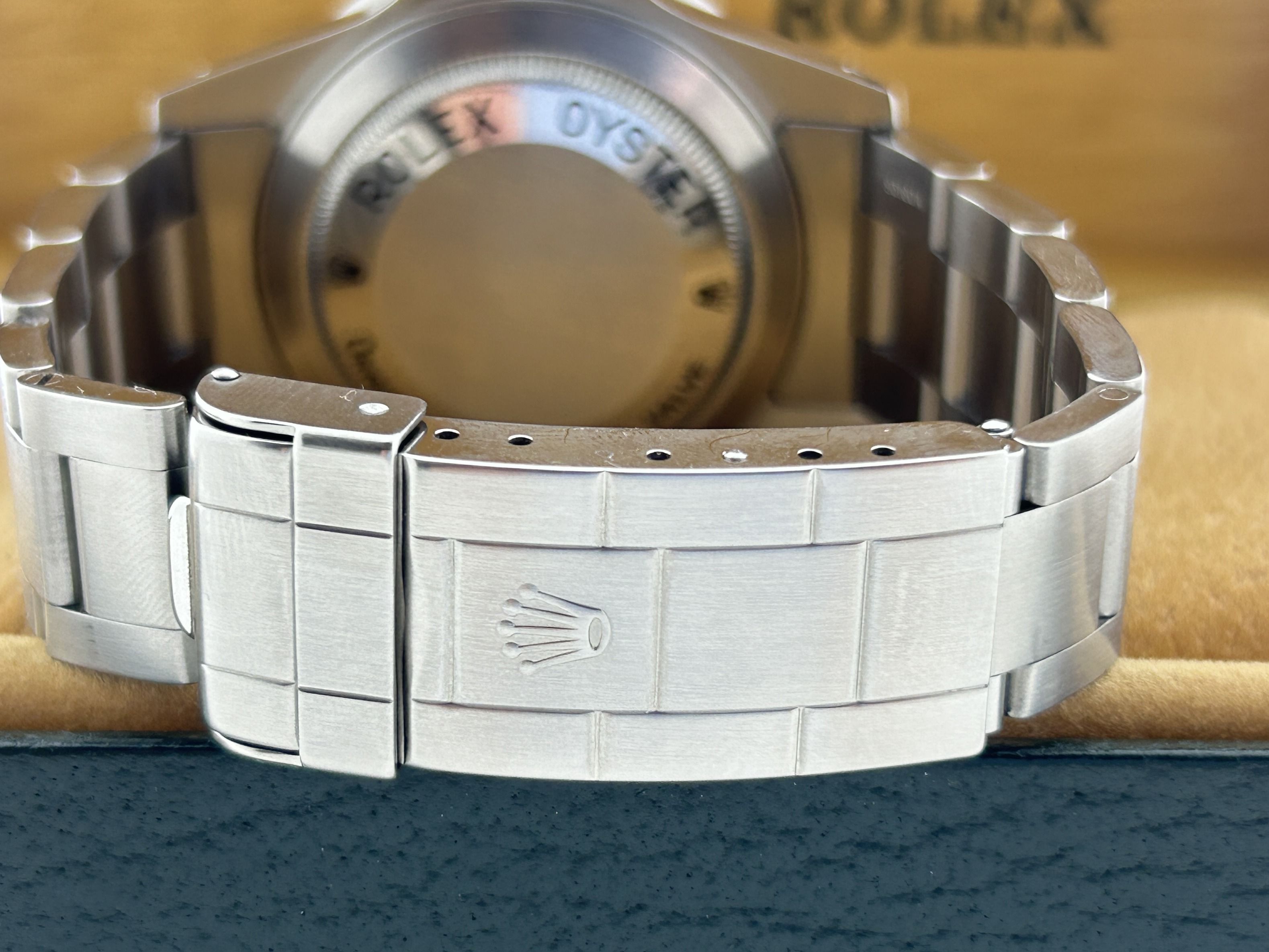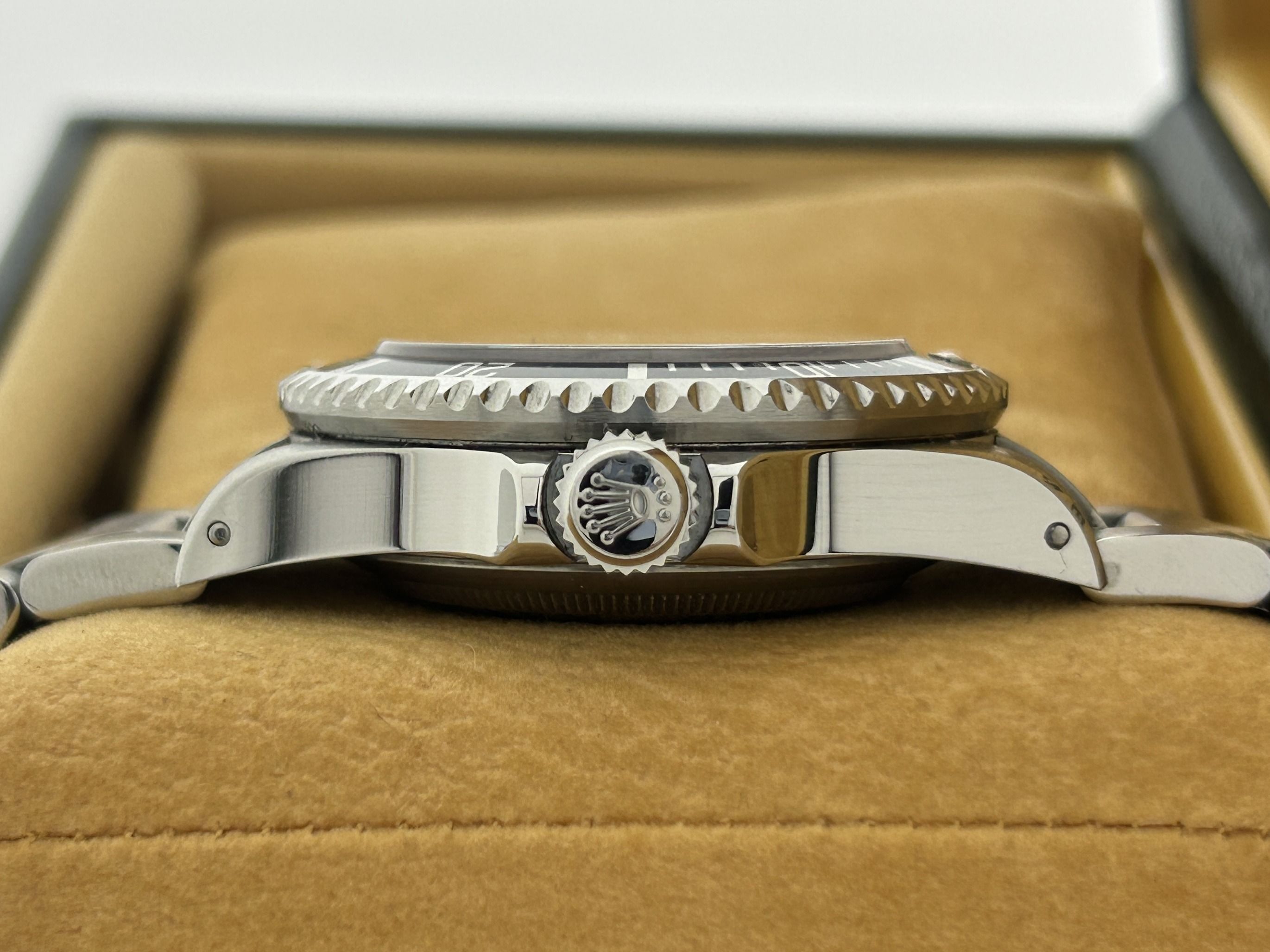 Eine Stahl Rolex Sea-Dweller, Ref. 16600, Fullset, aus 1998. Die Rolex hat ein 40mm Gehäuse mit einem Stahl-Oyster-Armband. Die Uhr hat eine schwarze Zifferblatt mit einem Datumsfenster bei 3 Uhr. Die Sea-Dweller wurde 2022 von Rolex gewartet und ist 97% neu. Die Uhr ist Fullset mit ihrer originalen Box und dem Zertifikat von 1998.