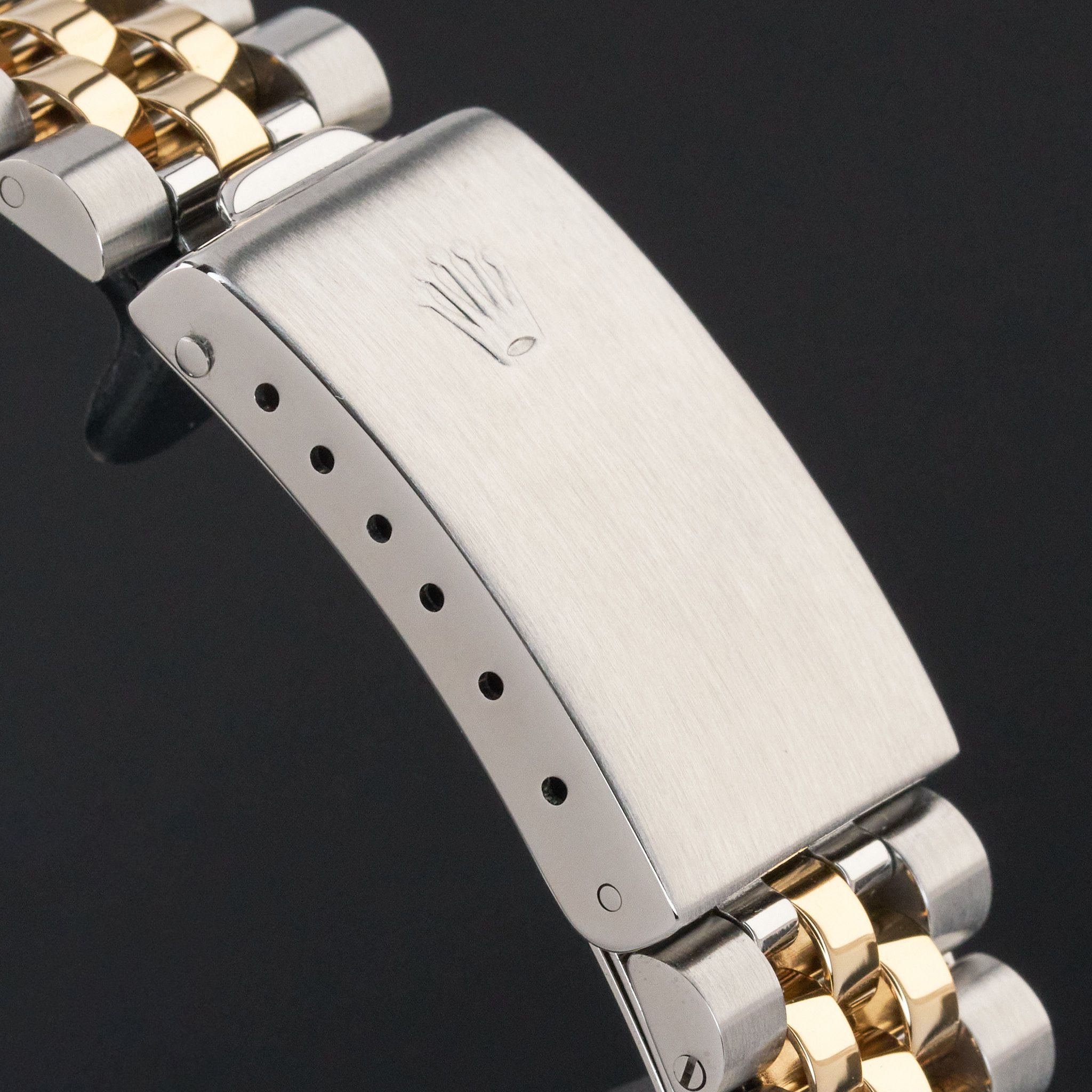 Diese Rolex Datejust 16013 verfügt über eine schwarze Zifferblatt und ist aus 18K Gelbgold und Edelstahl gefertigt, mit einem Produktionsjahr von 1983.