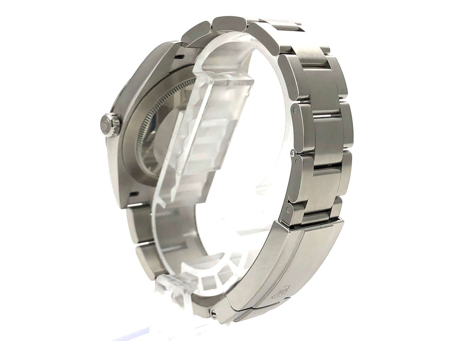 Gehäuse aus poliertem und satiniertem Edelstahl, Gehäusedurchmesser 41 mm, Oyster-Edelstahlarmband mit Faltschließe, grünes Zifferblatt mit Indizes, Automatik, Rolex Manufakturkaliber 3230, Gangreserve 70 Stunden, Saphirglas, wasserdicht bis 10 bar.