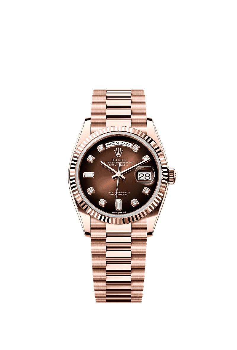 Rolex 128235-0037 Day-Date 36 Everose Gold / Fluted / Brauner Ombre-Diamant / Präsident