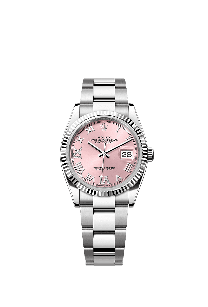 Rolex 126234-0032 Datejust 36 Stainless Steel / Fluted / Pink Roman-Diamonds / Oyster