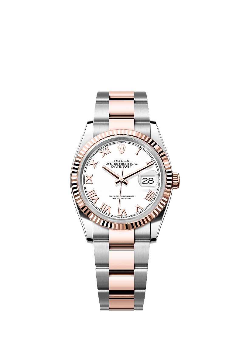 Rolex 126231-0016 Datejust 36 Stainless Steel / Everose / Fluted / White Roman / Oyster