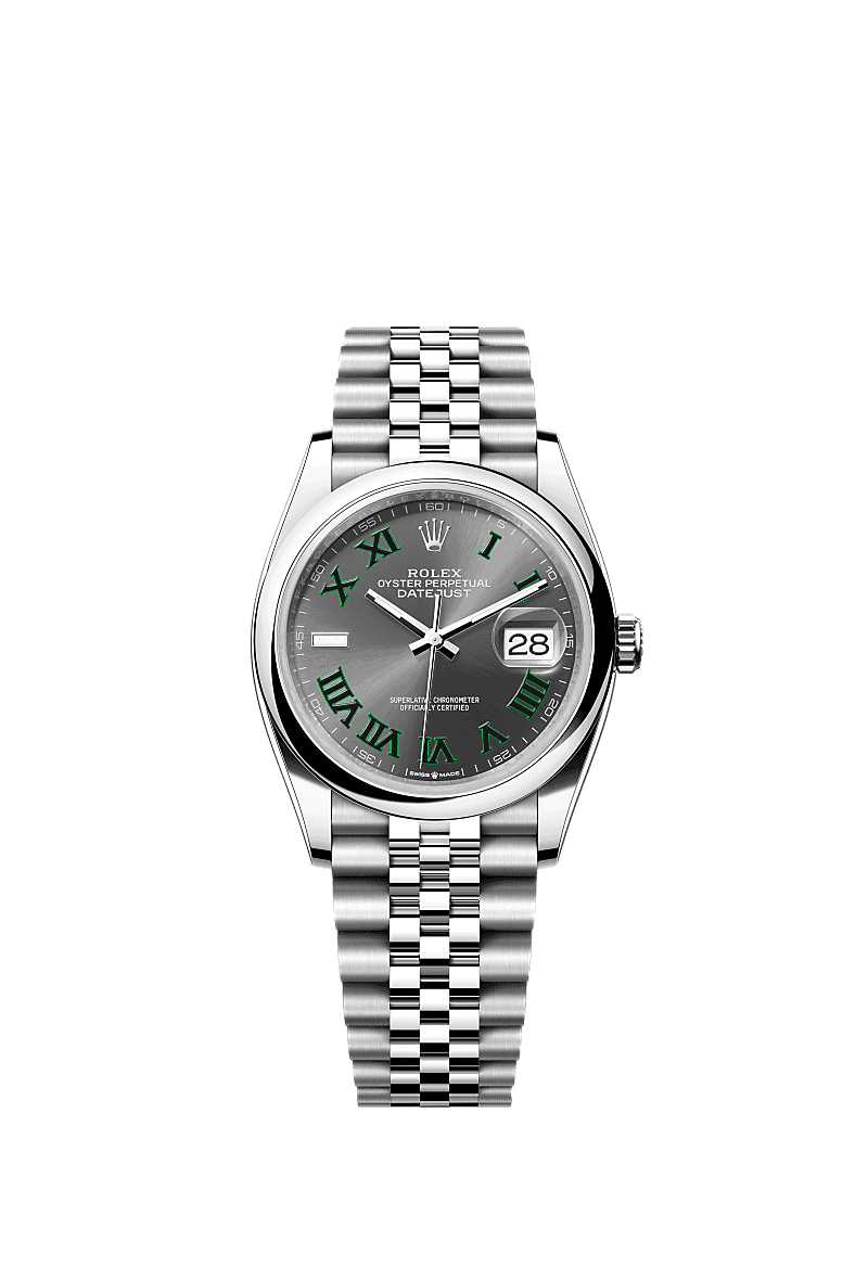 Rolex Datejust 36 Rolex 126200-0017 (Wimbledon) Datejust 36 Stainless Steel / Domed / Slate - Roman / Jubilee