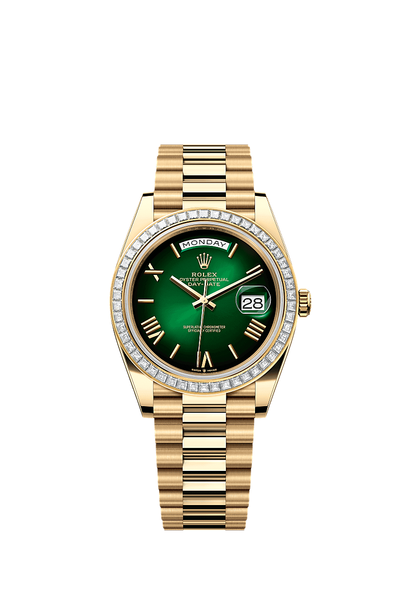 Rolex 228398TBR-0042 - Day-Date 40 Yellow Gold - Baguette / Green Ombré