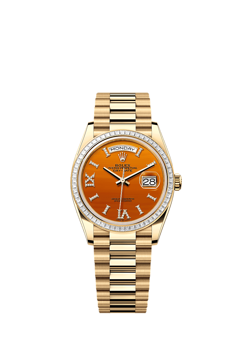 Rolex 128398TBR-0018 - Day-Date 36 Yellow Gold - Baguette / Carnelian / President