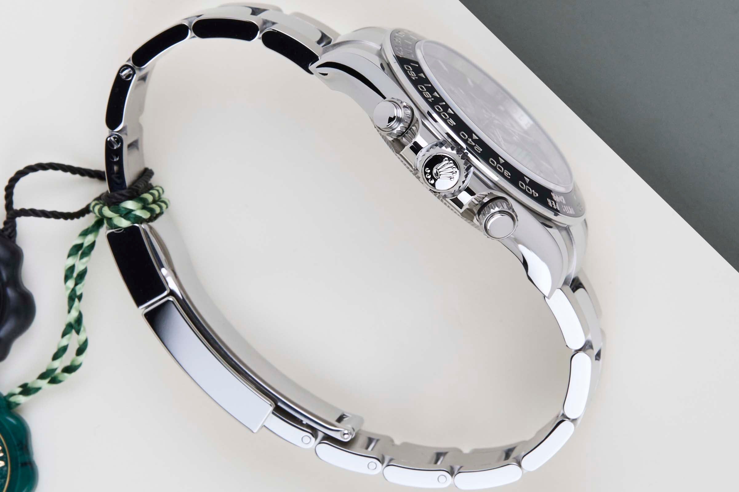 Diese Rolex Daytona ist neu & ungetragen und kommt als vollständiges Set mit der originalen Rolex Garantiekarte und der originalen Rolex Box. Darüber hinaus hat die Uhr noch bis Januar 2031 weltweite Rolex Garantie.