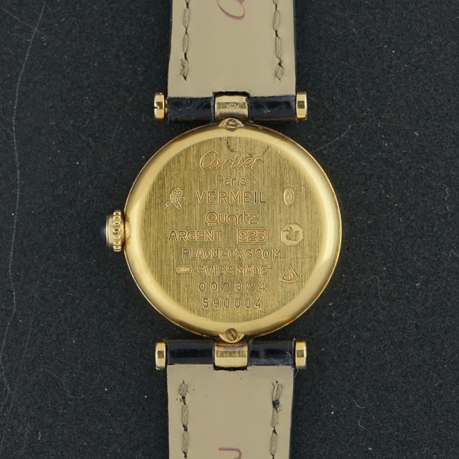 Vintage Cartier Vendome Vermeil SM Black dial Quartz 590004 - 24mm - 1990s