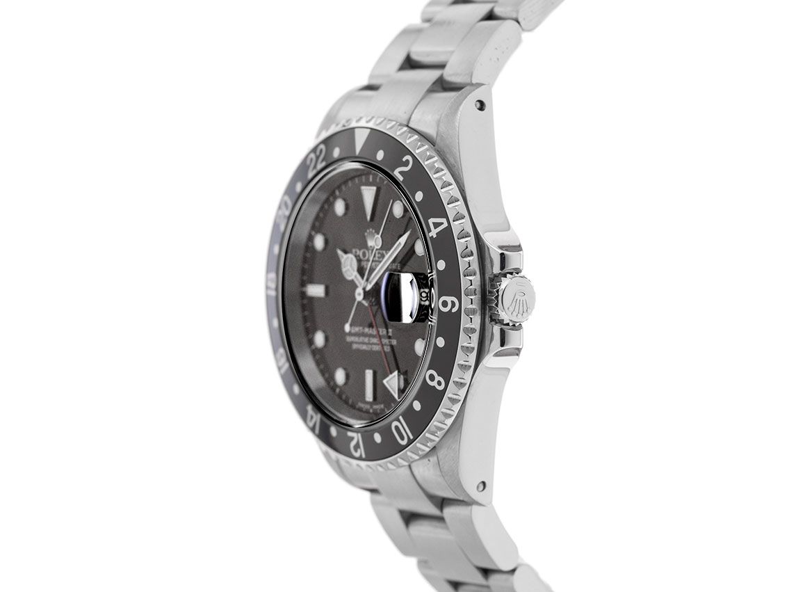 Gehäuse Edelstahl poliert und satiniert, Gehäusedurchmesser ohne Krone 40mm, Gehäusehöhe 11,7mm. Lünette Edelstahl mit schwarzem Inlay, 24 Stunden Skala, beidseitig drehbar. Armband Oyster Edelstahl poliert und satiniert, Faltschließe Edelstahl mit Hersteller-Logo. Zifferblatt schwarz mit aufgesetzten weißgoldenen Indexen und weißgoldenen Zeigern. Uhrwerk Automatik, Chronometer mit Zeugnis, Rolex Manufakturkaliber 3185 mit 31 Edelsteinen. Anzeige von Stunde, Minute und Sekunde über Zeiger aus der Mitte mit Sekundenstopp zur sekundengenauen Einstellung der Uhrzeit, Datumsanzeige mit Schnellverstellung unter Glaslupe bei 3 Uhr, zweite Zeitzone (GMT) ablesbar über Lünette, einstellbar über roten Zeiger aus der Mitte. Saphirglas kratzfest. Krone verschraubbar mit Flankenschutz und Hersteller-Logo. Boden Edelstahl verschraubt. Gewicht der Uhr inklusive Armband 119g, Länge des Armbandes inklusive Gehäuse 175mm. Referenznummer: 16710, Gehäusenummer: F410XXX, Baujahr: 2003, ID: P2326158000126H-13500, Artikelnummer: 10000084355. Mit Gangkontrolle und kompletter äußerlicher Aufarbeitung von Januar 2026. Original Rolex Box mit Umkarton und Garantie Papiere von November 2004, LC 100 / Germany, EU, sowie Beschreibung, Ledermäppchen, Übersetzungsheft, Rolex Chronometer- Siegel und Watchregister Auszug von Januar 2026, The Watch Register Zertifikat / ohne Eintrag (Internationale Datenbank für verlorene oder gestohlene Uhren), Full Set. Superschnäppchen, Kapitalanlage mit Wertsteigerungspotential, sehr seltenes Sammlerstück, aus erster Hand. Sehr guter Zustand. Lieferzeit sofort.