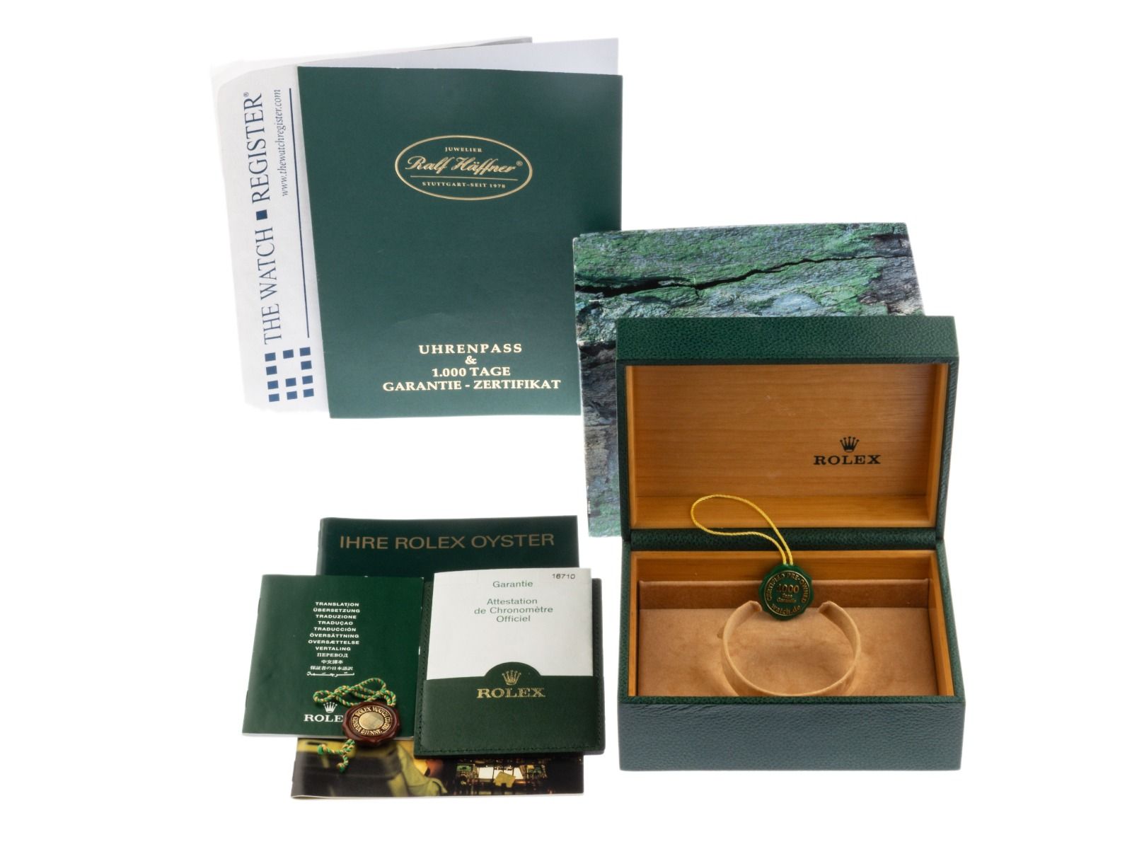 Inklusive certified pre owned Zertifikat / Uhrenpass mit einem Farbbild, der genauen Beschreibung sowie dem Wiederbeschaffungswert der Uhr über 13500,-€ und 1000 Tage Garantie ab Kaufdatum.