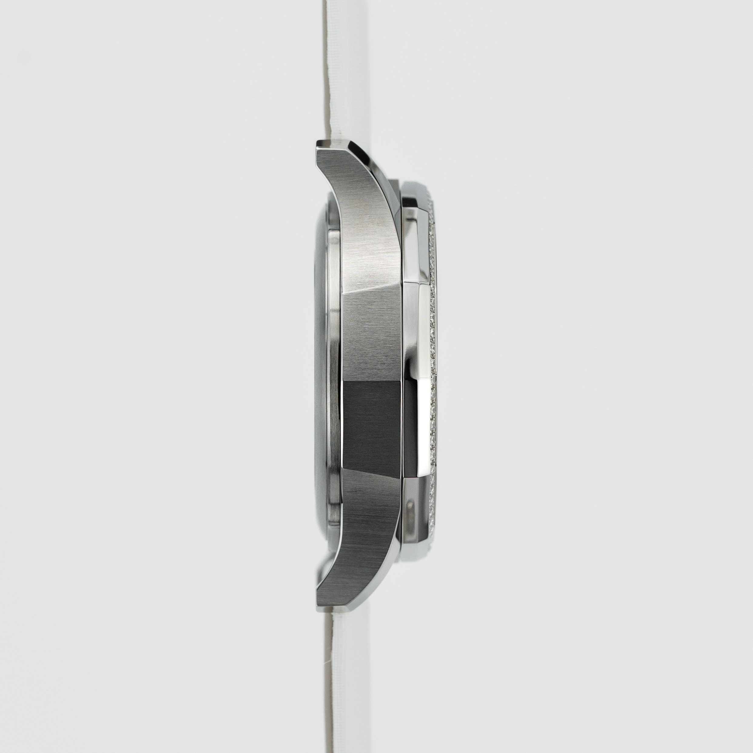 Im Vergleich zu seinen Vorgängern zeichnet sich diese Uhr durch ihr komfortables, aber dennoch aus der Ferne auffälliges, 12-eckiges Gehäuse und den "mehrschichtigen" Effekt des Gehäuses aus – das jetzt 38 mm ohne Krone misst (eine hervorragende Wahl für Damen, die, den modernen Trends folgend, größere Gehäuse bevorzugen). Die wunderschön dekorierte Zifferblatt, aus farbigem Perlmutt (sogenanntes "Schwarzes Perlmutt"), zeigt die Uhrzeit, das Datum und die Mondphase an und verwendet reichlich hochwertige Diamanten – insgesamt 72 mit einem Gesamtgewicht von 0,58 Karat.