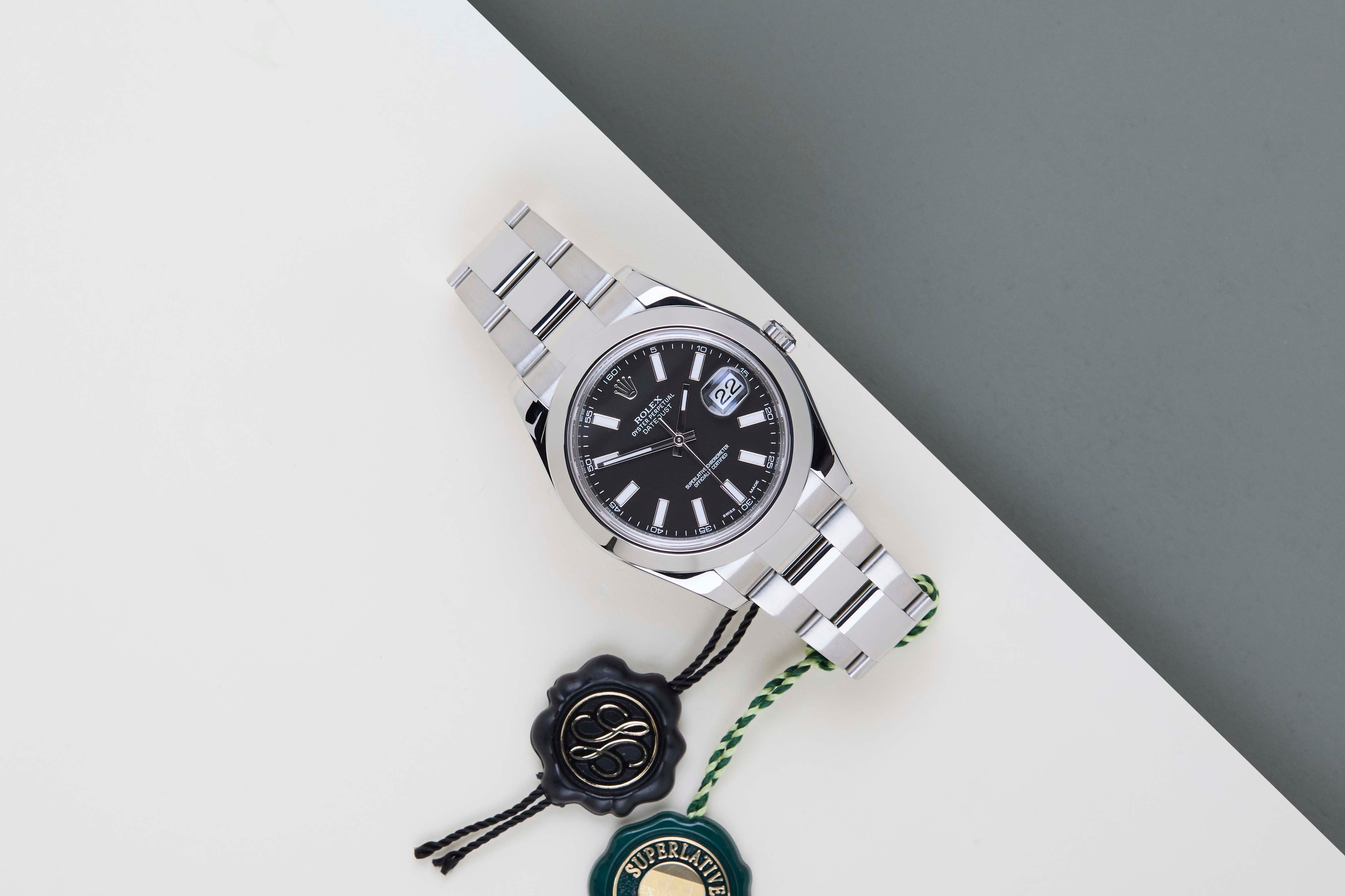Full Set | European Warranty Card (LC150-Spain)Rolex introduced the original Datejust in 1945 to celebrate the company's 40th anniversary. Due to the various case sizes and materials, the Datejust has been ingrained in Rolex's history and remains incredibly popular for 75 years.This Rolex Datejust II 'Black Dial - Oyster' was sold for the first time in October 2014.This Datejust is made of stainless steel and is fitted with a Oyster bracelet.This Rolex Datejust II is in Mint condition and comes with the original Rolex Warranty Card and box. Furthermore, the watch has been serviced by our watchmaker, and therefore it comes with one year of Steiner warranty.