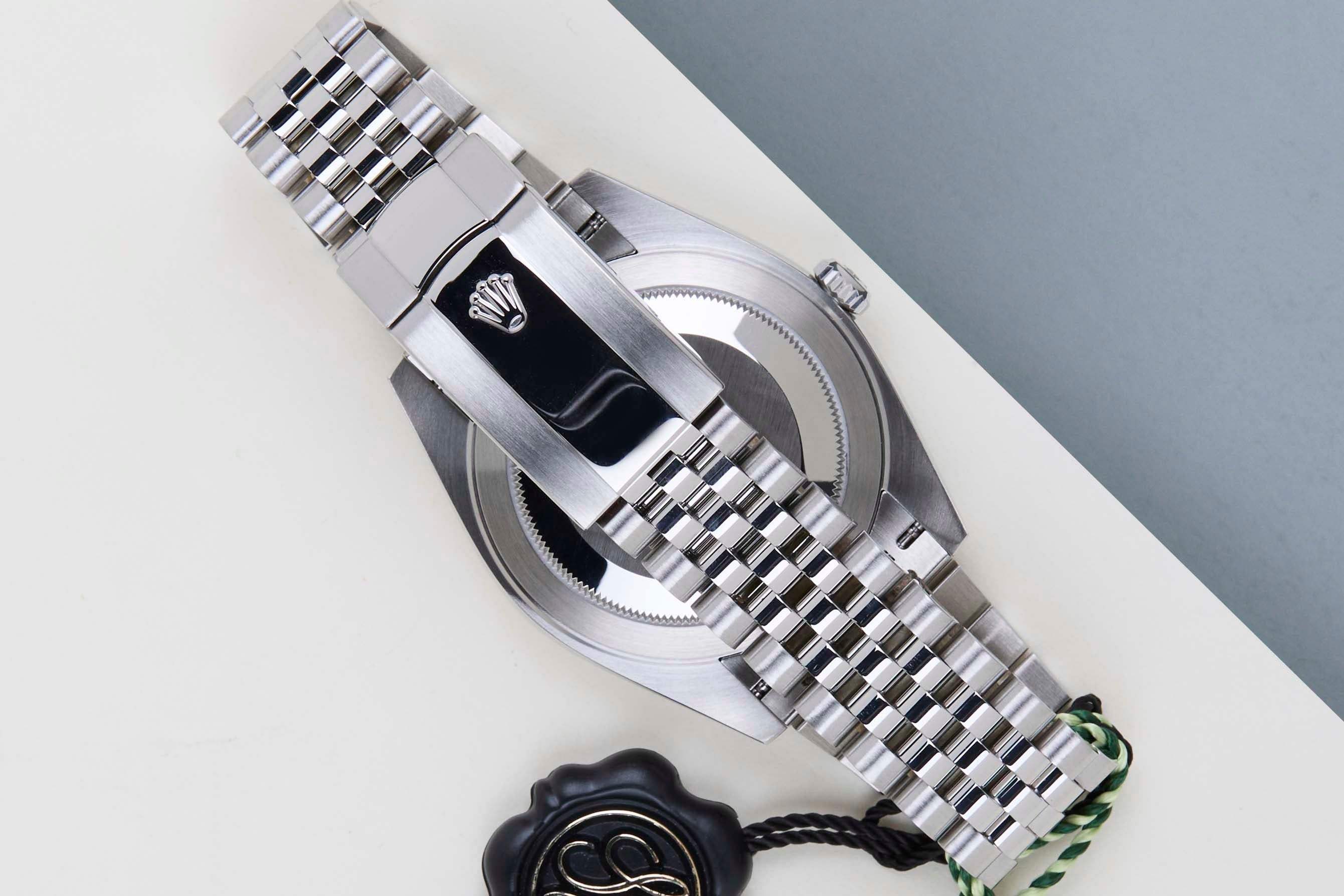 Diese Rolex Datejust 41 ist in neuwertigem Zustand und kommt mit der originalen Rolex Garantiekarte und Box. Darüber hinaus hat die Uhr noch eine internationale Rolex Garantie bis Oktober 2027.