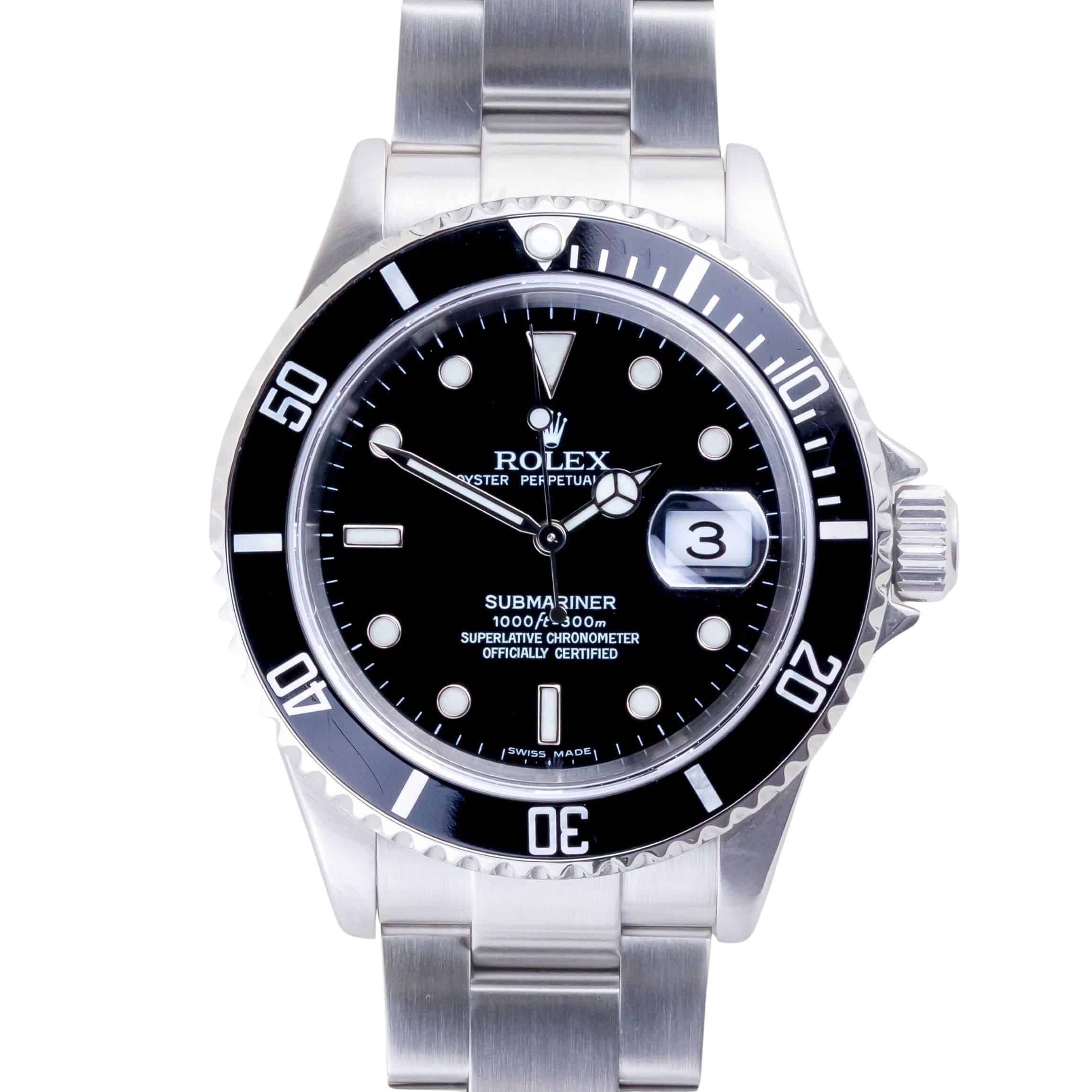Rolex Oyster Perpetual Submariner Date Reference 16610 from 2006. The Submariner 16610 measures a 40mm stainless steel case, a stainless steel Oyster bracelet w/ Fliplock clasp and black rotatable bezel. The Submariner 16610 features an automatic caliber 3135 with quickset date function, a scratch resistance sapphire crystal and black Swiss only dial with luminova index.Every watch sold by Langedyk Vintage Watches is included with a LVW watch box, Authenticity report and free worldwide (insured) shipment. In addition, every pre-owned watch is offered with our 12-month warranty from the date of purchase.
