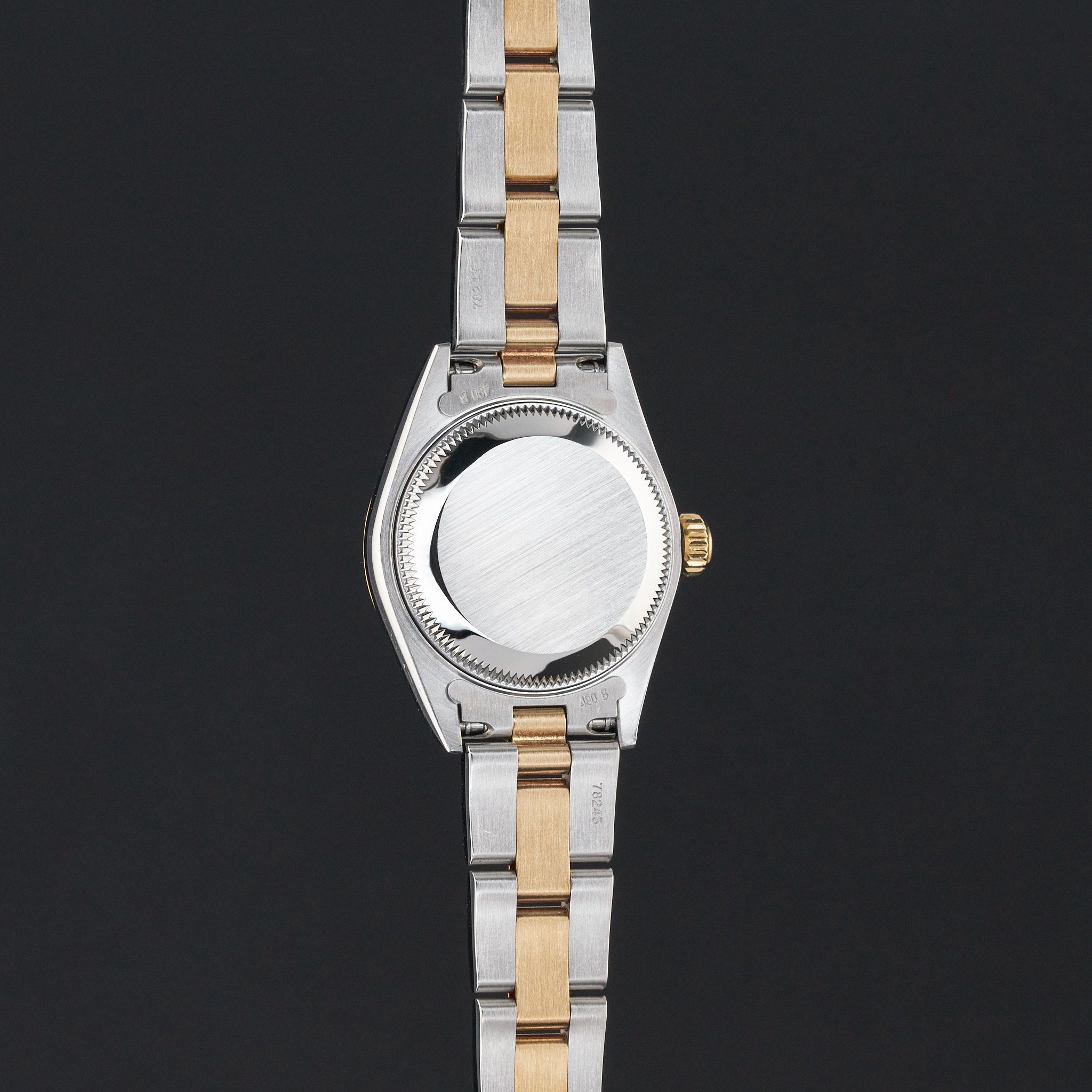 Diese Rolex Lady-Datejust 79163 verfügt über eine graue römische Zifferblatt und ist aus 18K Gelbgold und Edelstahl gefertigt, mit einem Produktionsjahr von 2001.