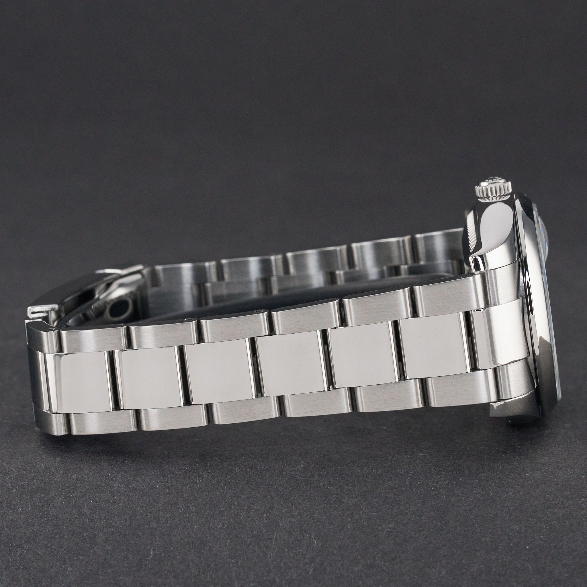 - Leichte Gebrauchsspuren wie feine Kratzer oder kleine Oberflächenkratzer. Gehäuse, Lünette und Armband behalten ihre scharfen Kanten und die ursprüngliche Form. Kann professionell poliert worden sein, ohne die originalen Konturen zu verändern. Mechanisch voll funktionsfähig.