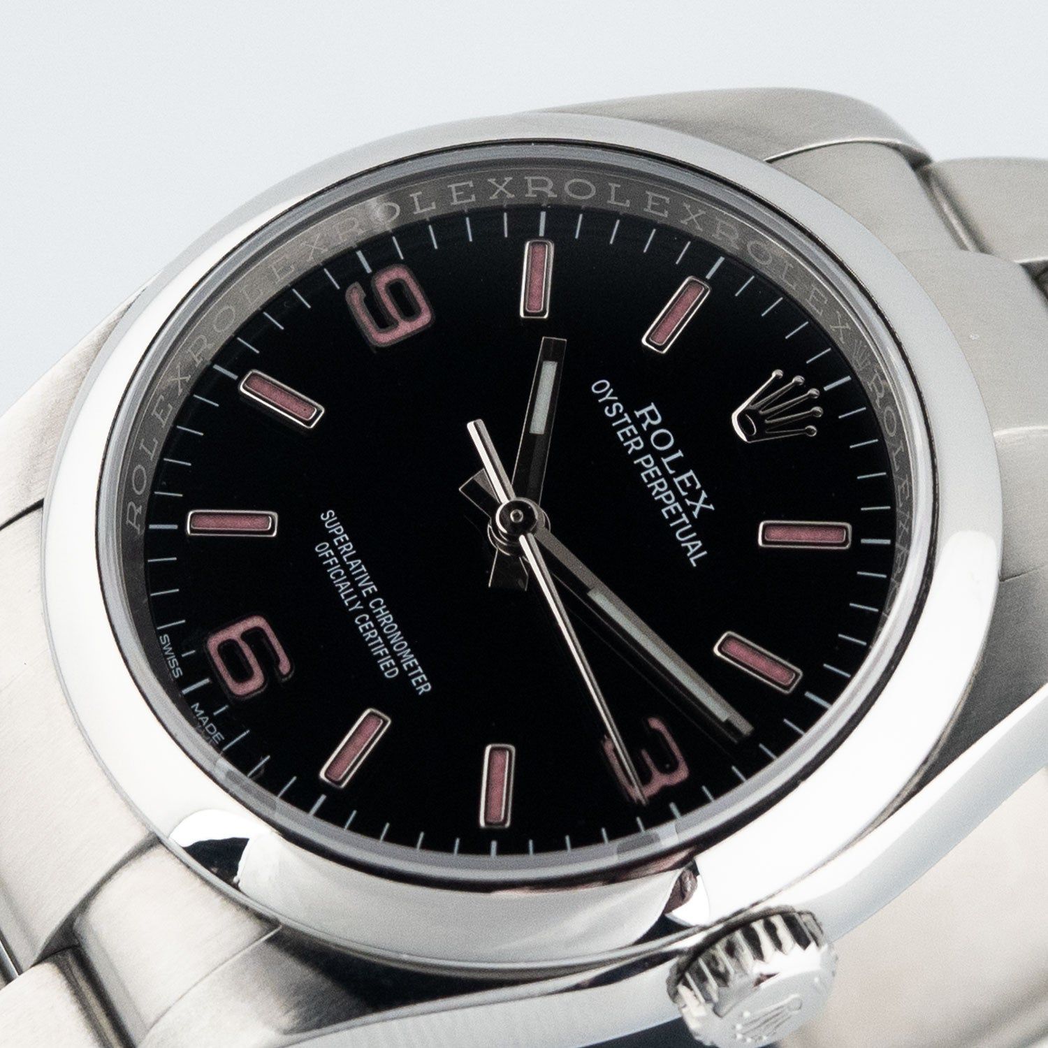 Oyster Perpetual 36 schwarze Zifferblatt mit pinken Indizes 2016 - 116000