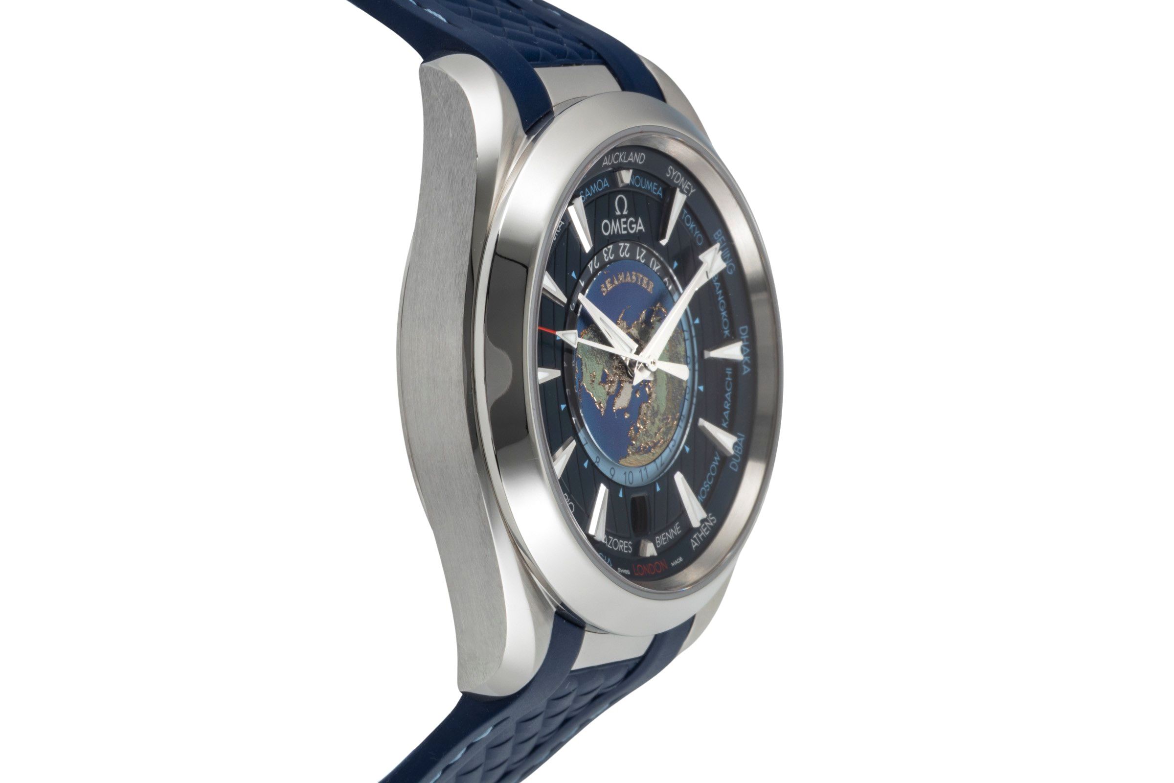 Alternative title: Omega 220.12.43.22.03.001 Seamaster Aqua Terra 150M Master Chronometer 43 Worldtimer Stainless Steel / Blue / Rubber; Omega Seamaster Aqua Terra 150M Worldtimer Ref 220.10.43.22.03.001 NP: 10600,- € [2601028]
