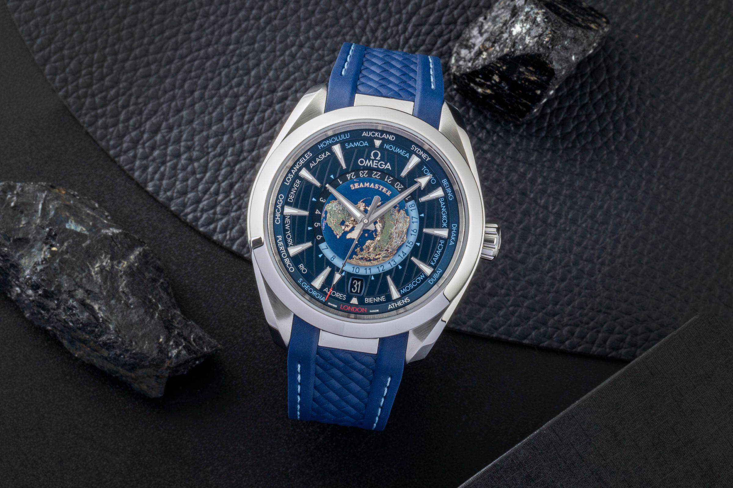 Alternativer Titel: Omega 220.12.43.22.03.001 Seamaster Aqua Terra 150M Master Chronometer 43 Worldtimer Edelstahl / Blau / Gummi; Omega Seamaster Aqua Terra 150M Worldtimer Ref 220.10.43.22.03.001 NP: 10.600,- € [2601028]