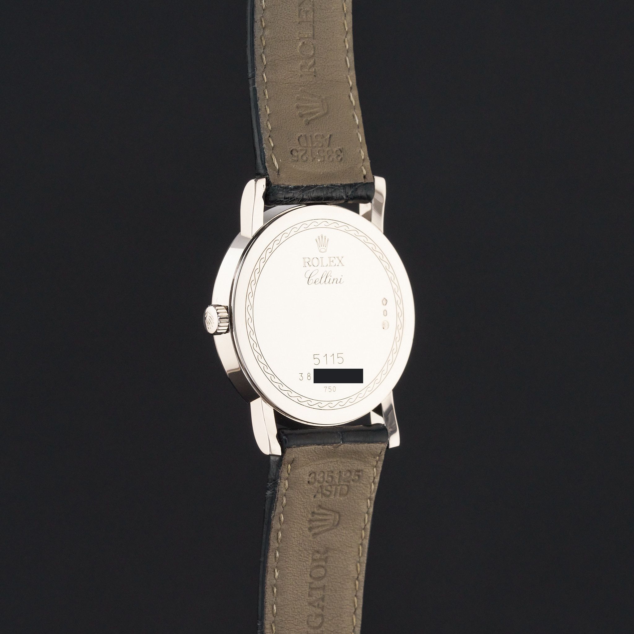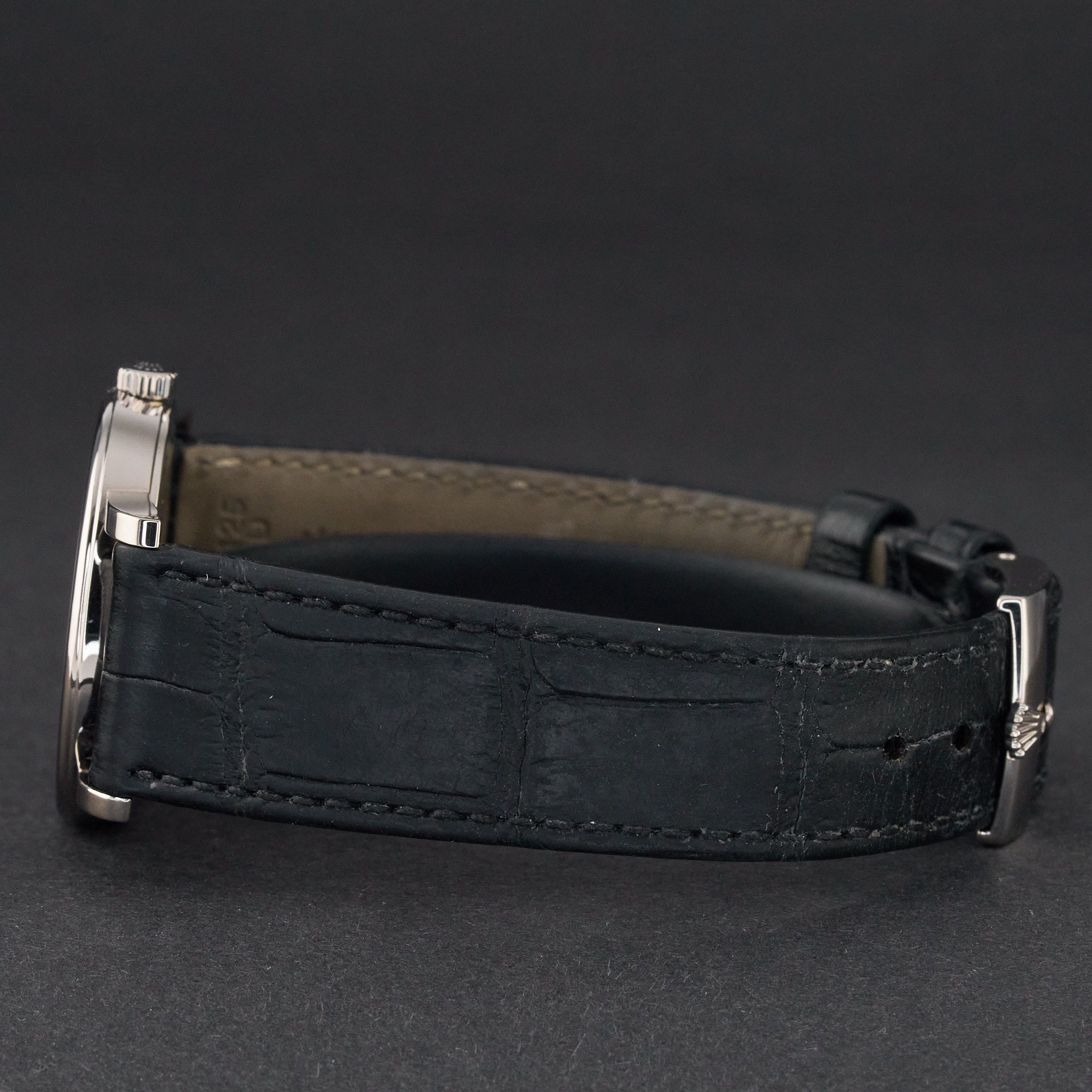 This Rolex Cellini 5115 features a Silver jubilee Roman and is crafted from 18K white gold.Case No: 3896XXXX