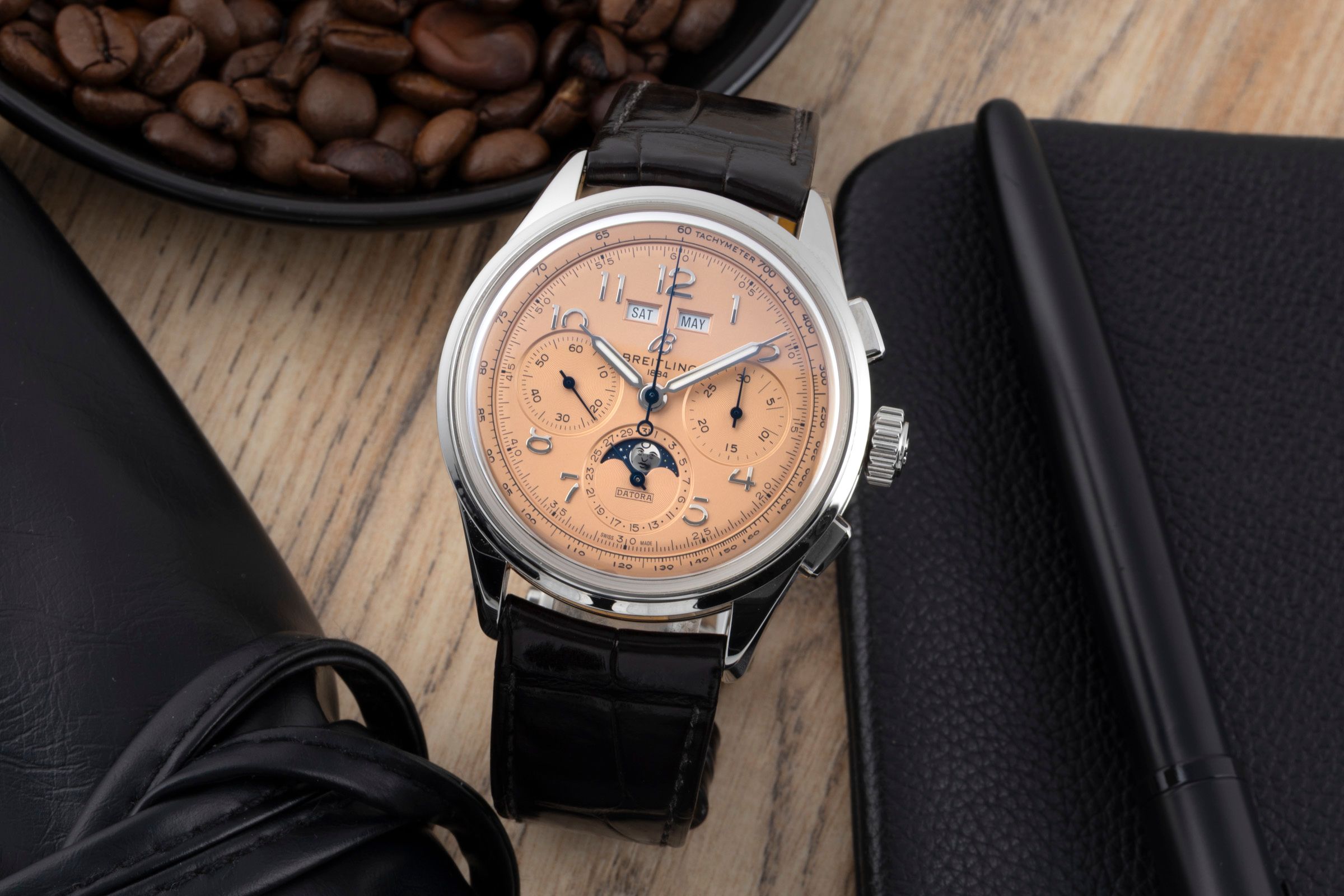 Alternative title: Breitling AB2510201K1P1 Premier Heritage B25 Datora 42 Stainless Steel / Copper; Breitling Premier B25 Datora 42 Chronograph Ref. AB2510201K1P1 NP: 14900,- € [2601058]