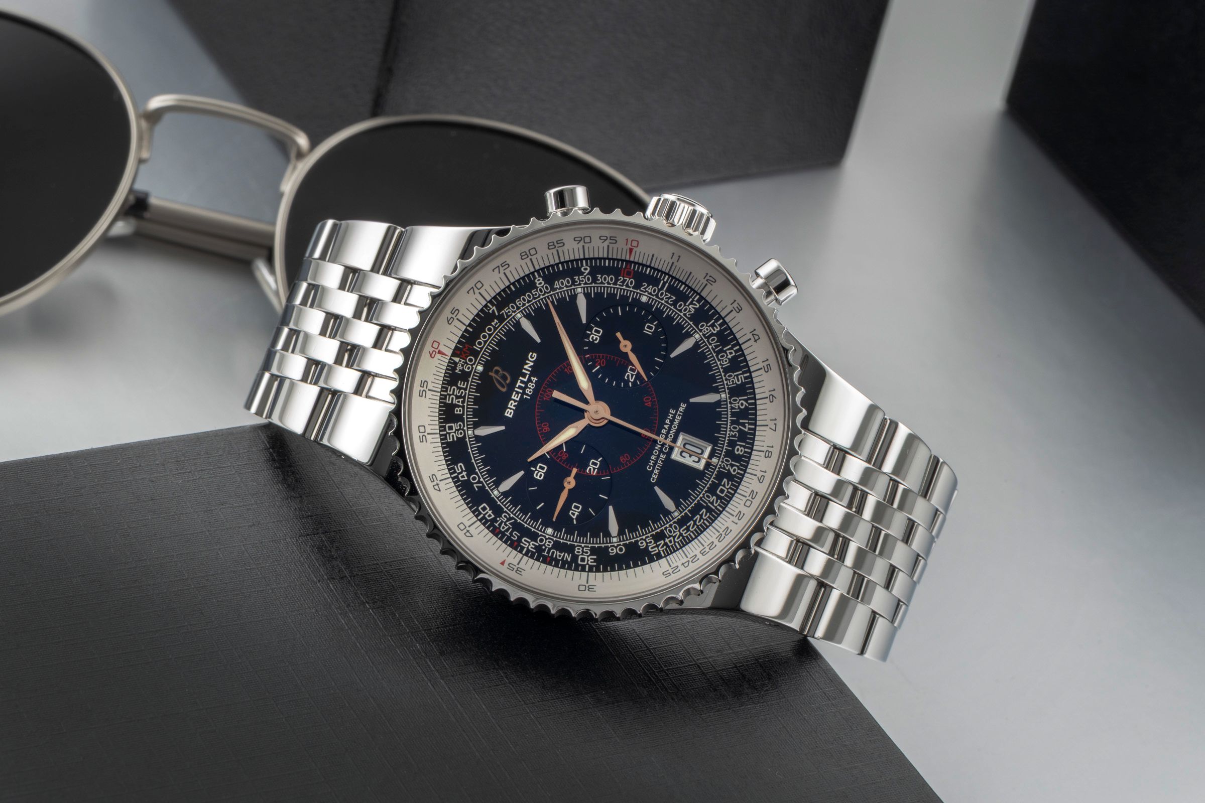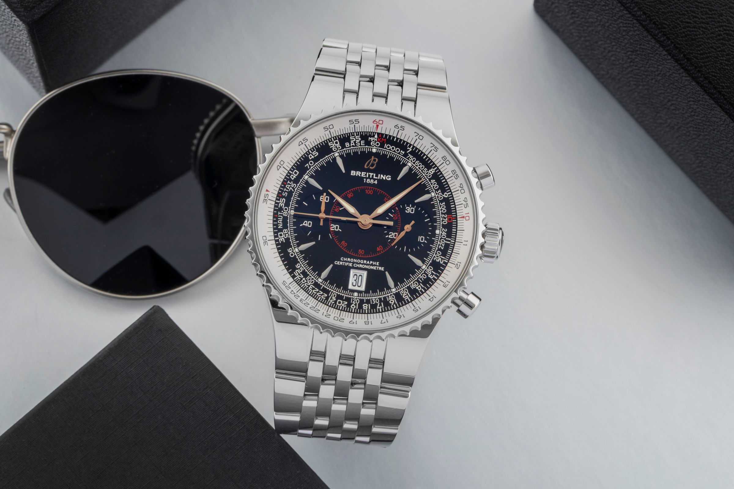 Accessories: Original Breitling box as pictured, Original papers as pictured, Booklets as pictured