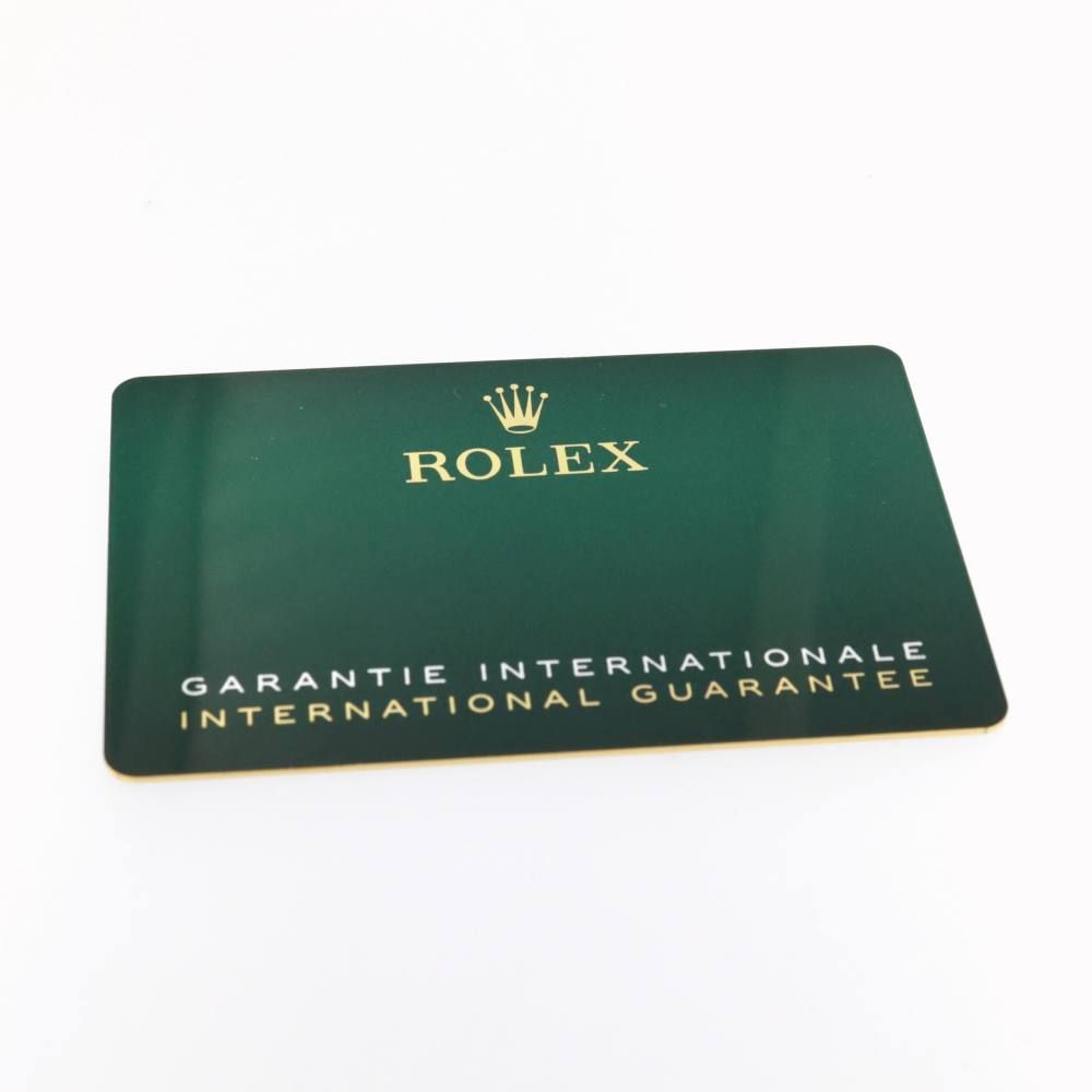 Die Uhr ist in MINT-Zustand, im kompletten Set, mit original Rolex-Box, Papiere und Garantiekarte. Die internationale Garantiekarte wurde 2025 von einem offiziellen Rolex-Händler gestempelt.