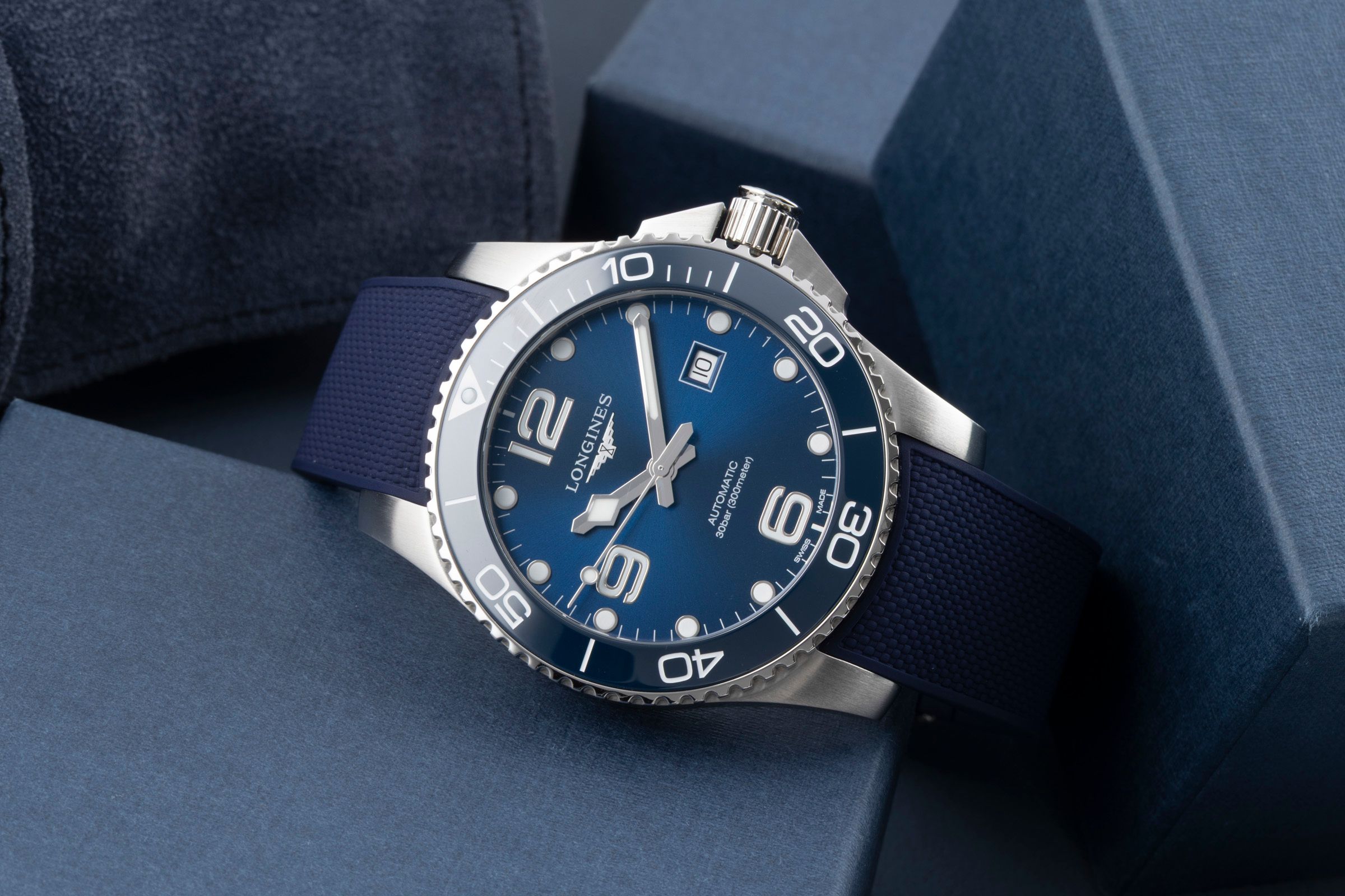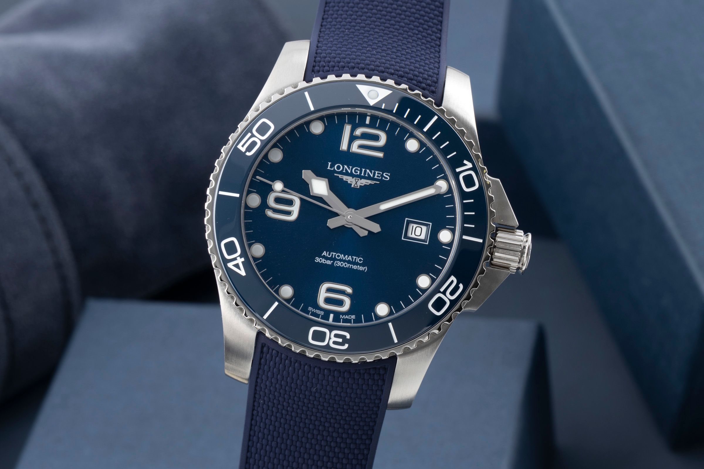Alternative title: Longines L3.782.4.96.9 HydroConquest 43 Automatic Stainless Steel / Ceramic / Blue / Rubber; Longines Hydro Conquest Stahl Automatik Herrenuhr Ref. L3.782.4.96.9 B&P 2024 [2601171]
