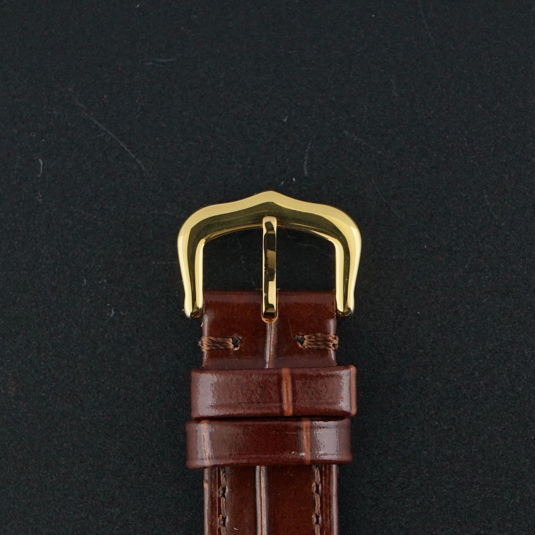 Wir haben die Uhr mit einem braunen Lederarmband mit Krokodilsmuster und einem leicht glänzenden Finish kombiniert, hergestellt in Frankreich. Der Gesamtzustand dieses schönen Stücks ist großartig und es wäre eine ausgezeichnete Dresswatch für die anspruchsvolle Dame.