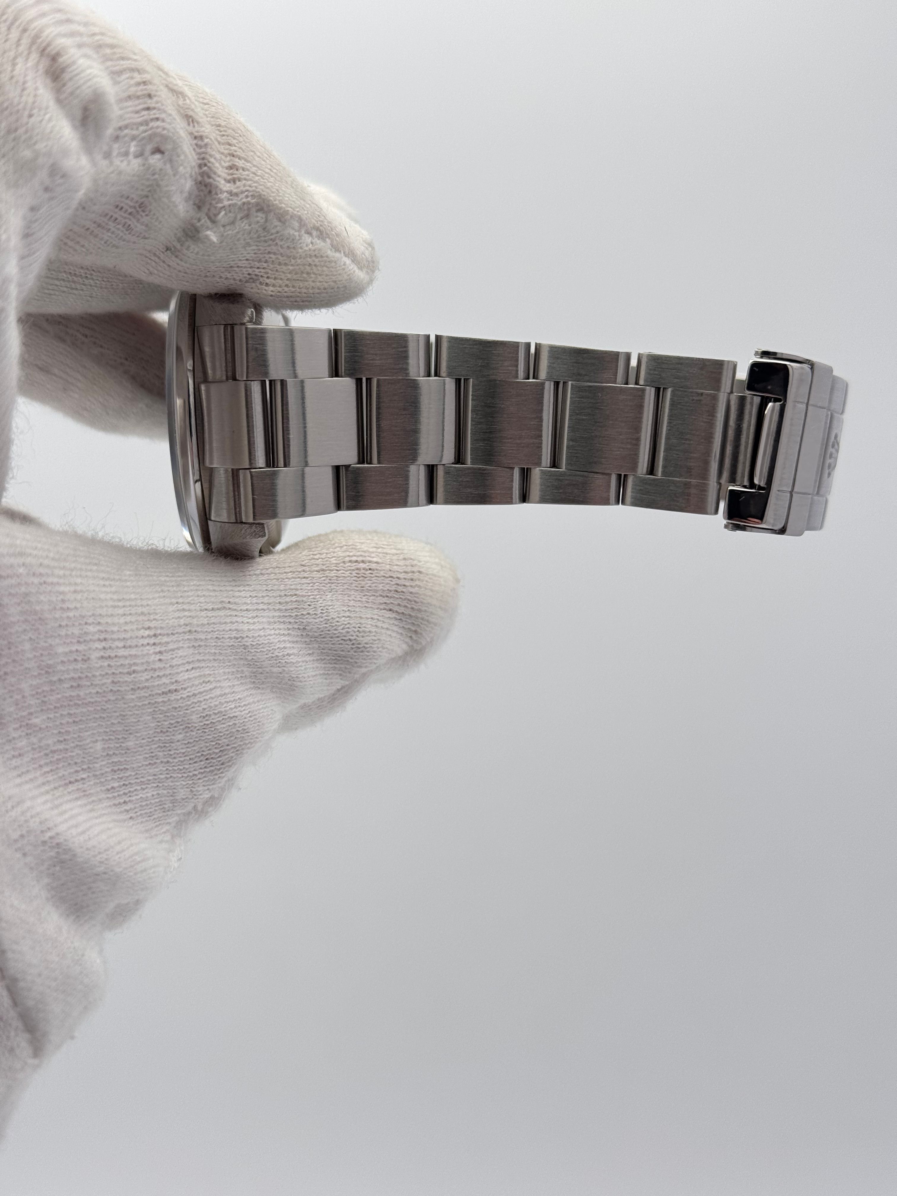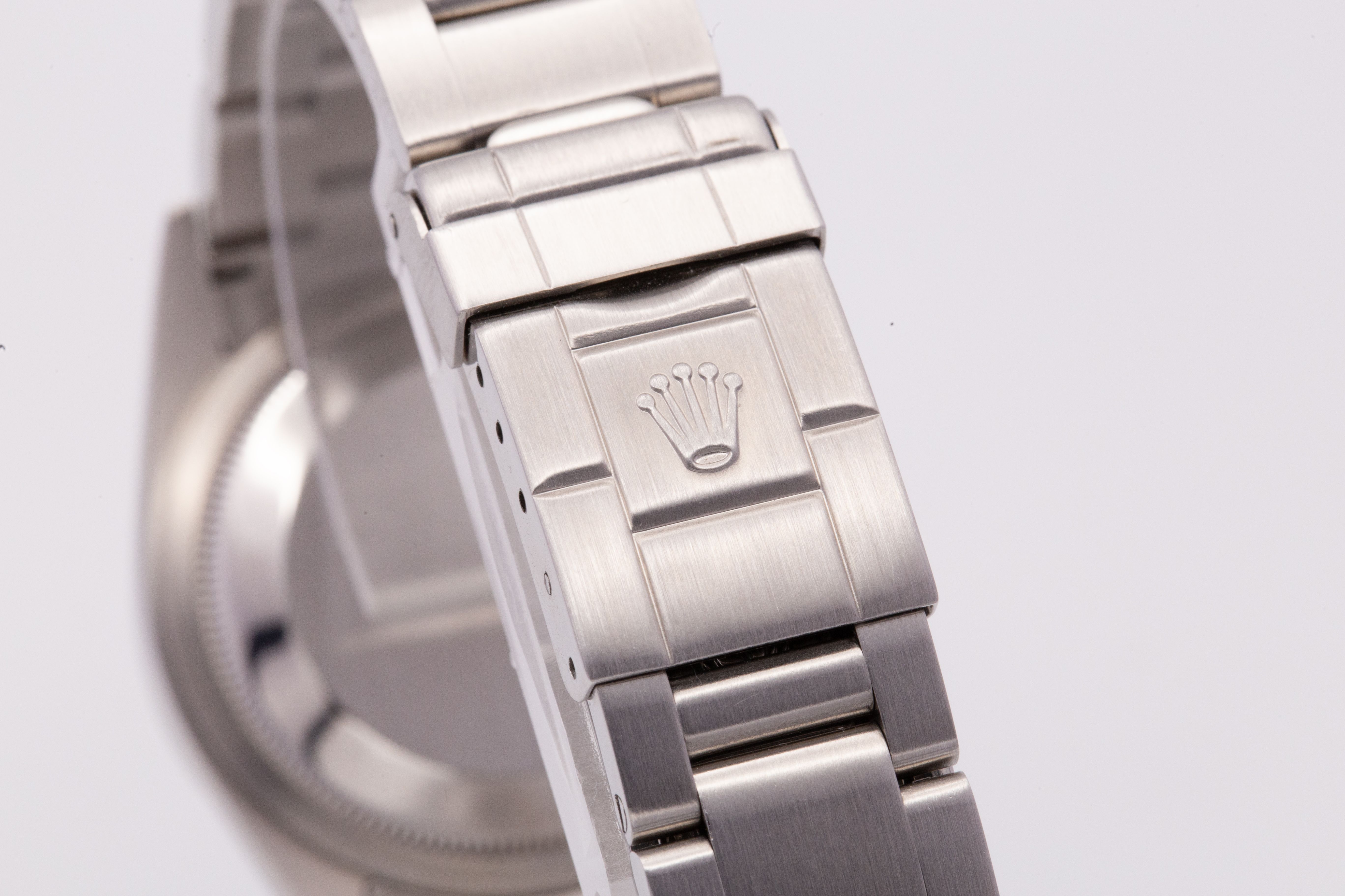 Das Oysterband Ref. 78690 mit originalen Solid End Links (SEL) befindet sich ebenfalls in sehr gutem Zustand. Die Schließe zeigt nur minimale Gebrauchsspuren, die gestanzte Rolex-Krone ist klar und scharf ausgeprägt. Stretch ist nicht vorhanden.