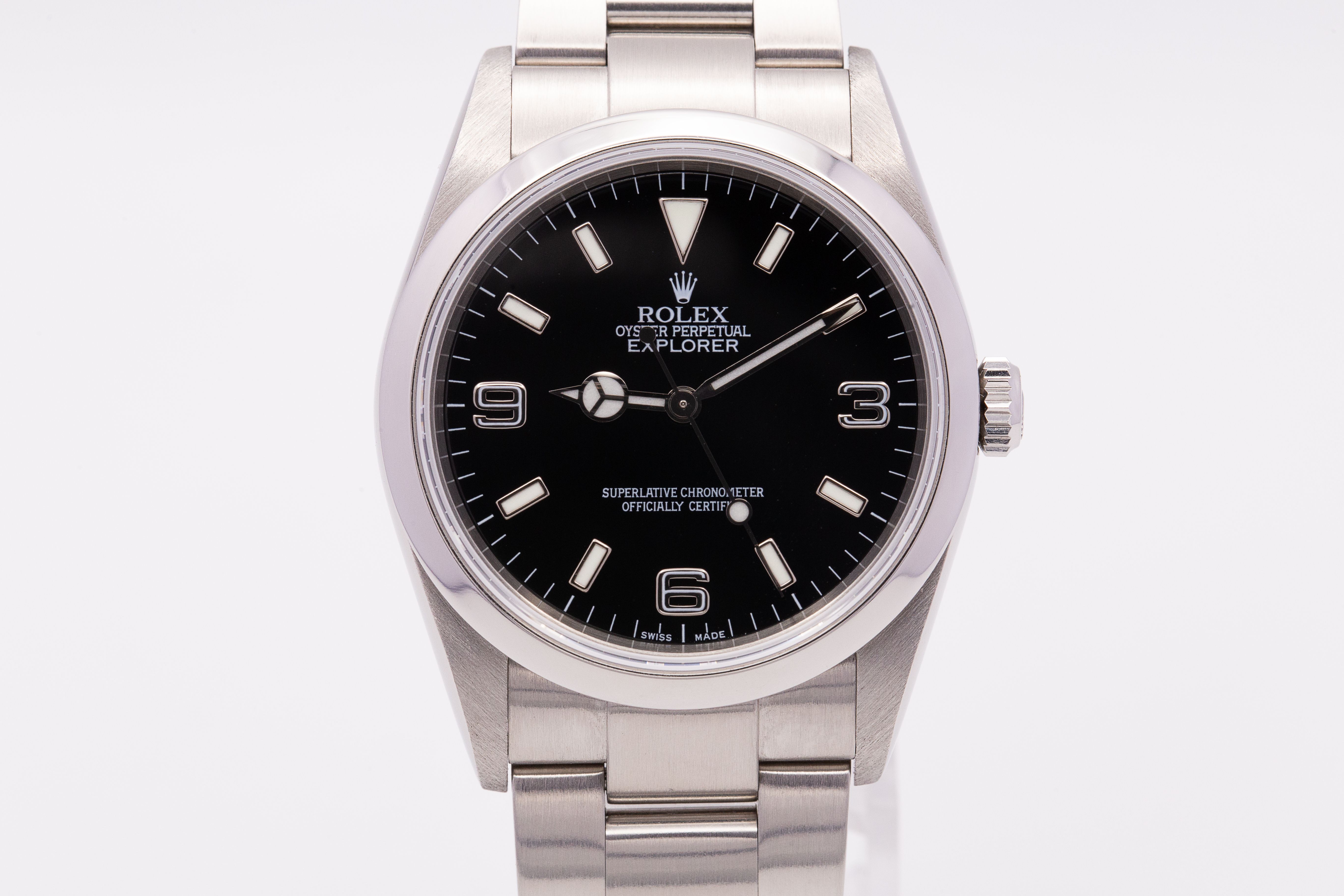 Zum Verkauf steht eine Rolex Explorer I Ref. 114270 aus dem Jahr 2005 im Fullset sowie mit frisch durchgeführter Revision.