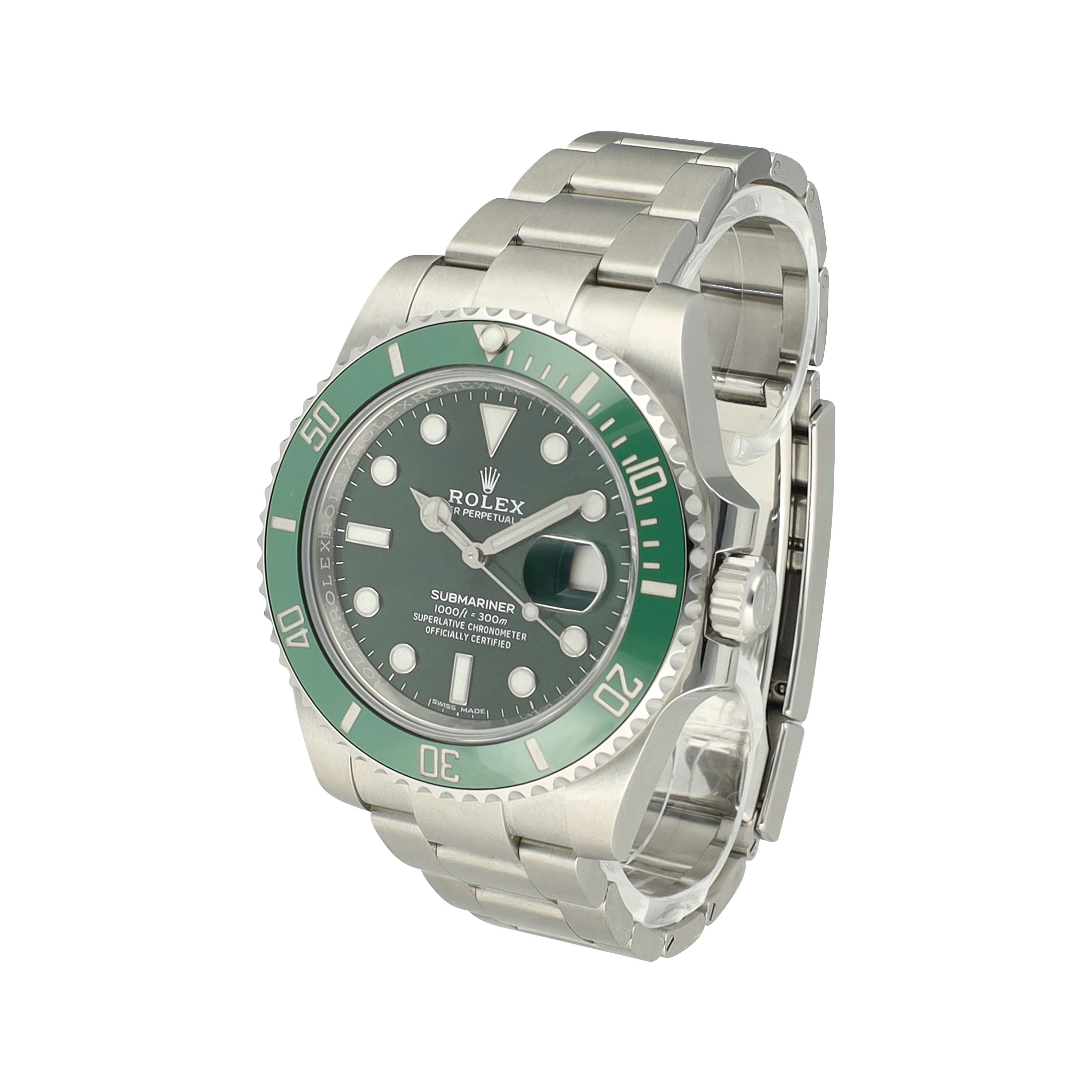 Powered by the automatic Rolex caliber 3135, this Submariner delivers outstanding precision, a quickset date function, and an approximate power reserve of 48 hours.