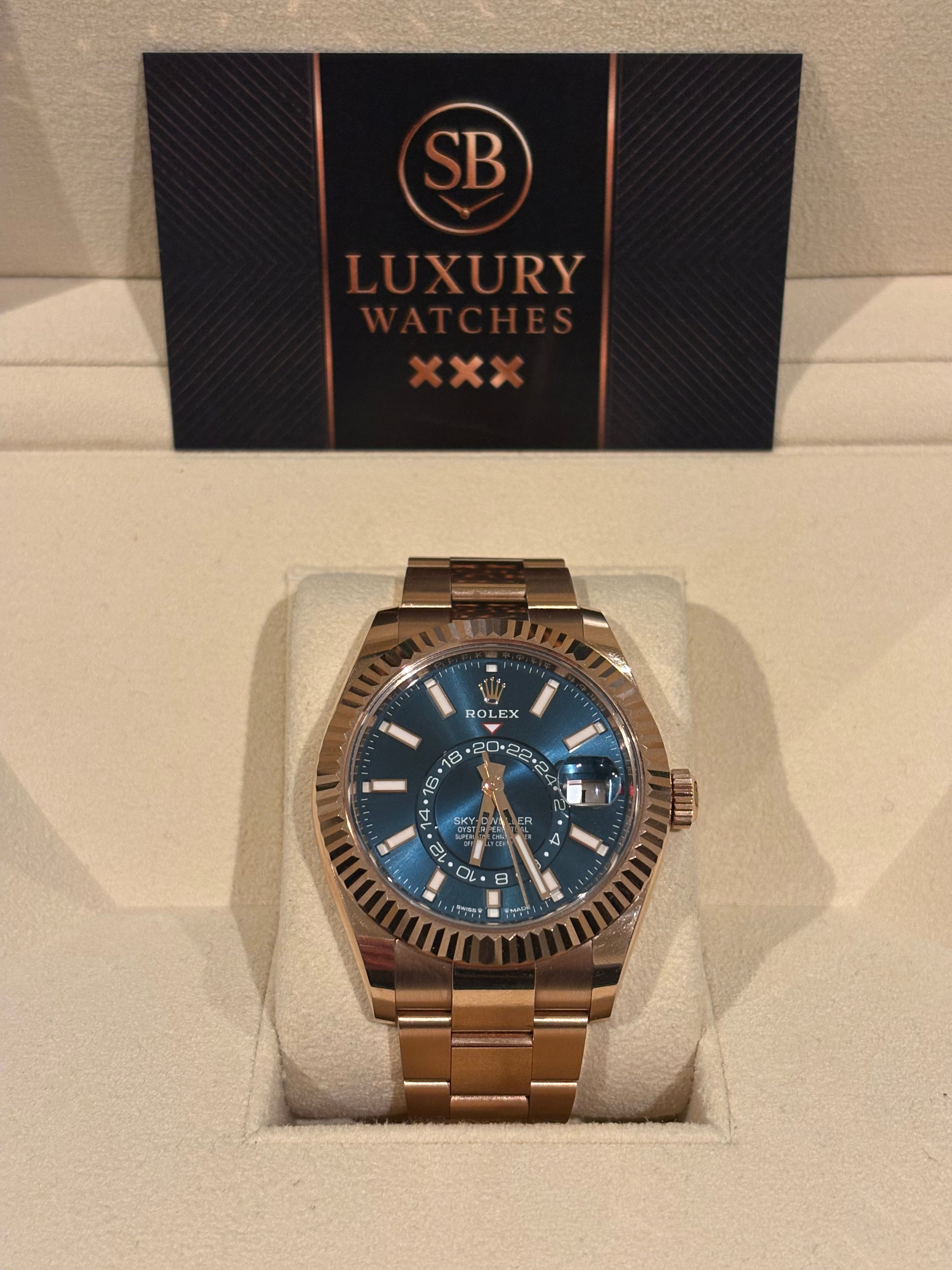 Rolex Skydweller rosé gold with a blue DialOyster bracelet full set
