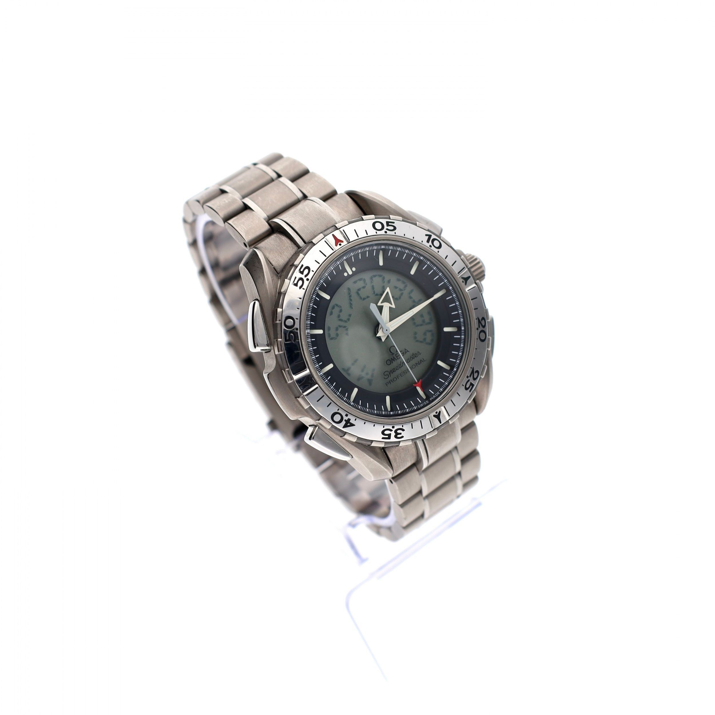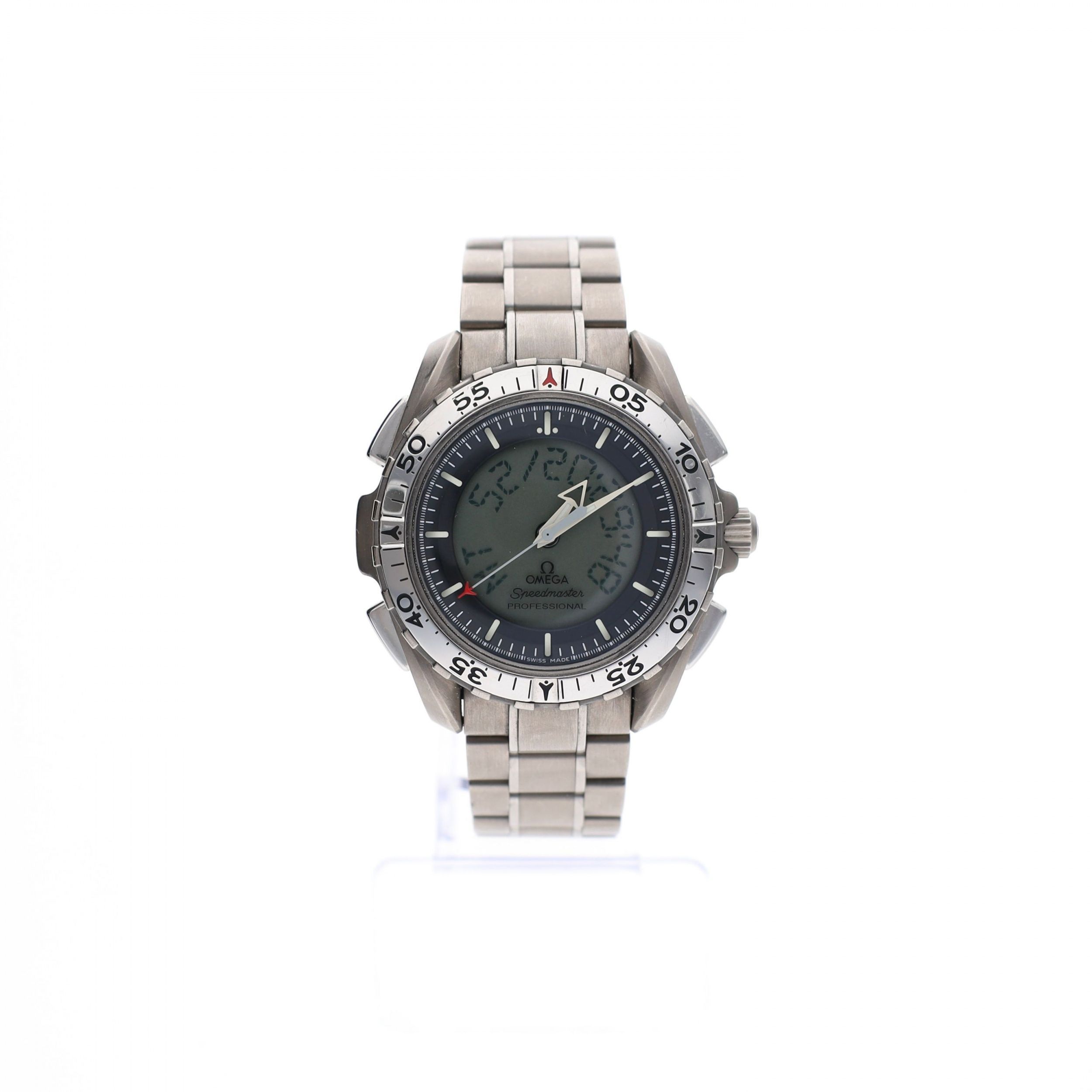 Widen your horizon? With the Omega Speedmaster X-33 Skywalker (ref. 3291.50), a unique and technically advanced watch from Omega's professional Speedmaster line, you are well-prepared. This model was developed in collaboration with astronauts and designed for use in space, a modern instrument with a clear link to Omega's long history in space exploration. The X-33 stands out with its functional and instrumental design, combining analog and digital displays. This makes the watch extremely suitable for professional use, with features focused on precision and reliability under extreme conditions. Inside, the advanced Omega Caliber 1666 quartz movement operates. This multifunctional caliber offers various practical functions, including multiple time zones, alarm, and chronograph capabilities. The battery was recently replaced (11-2025) by our Omega Certified Service Center, ensuring reliability and functionality. This piece is in good (vintage) condition and has a clear 'tool watch appearance' that fits its professional background. The titanium bracelet is also in good condition with some regular wear. It fits wrists of approximately 18cm. The watch is delivered with a luxurious watch box, our warranty report, and 1 year warranty. A functional and rare astronaut watch, developed for professional use and loved by space and technical watch enthusiasts. The X-33 is a unique object within the Speedmaster series, with its own character and history.