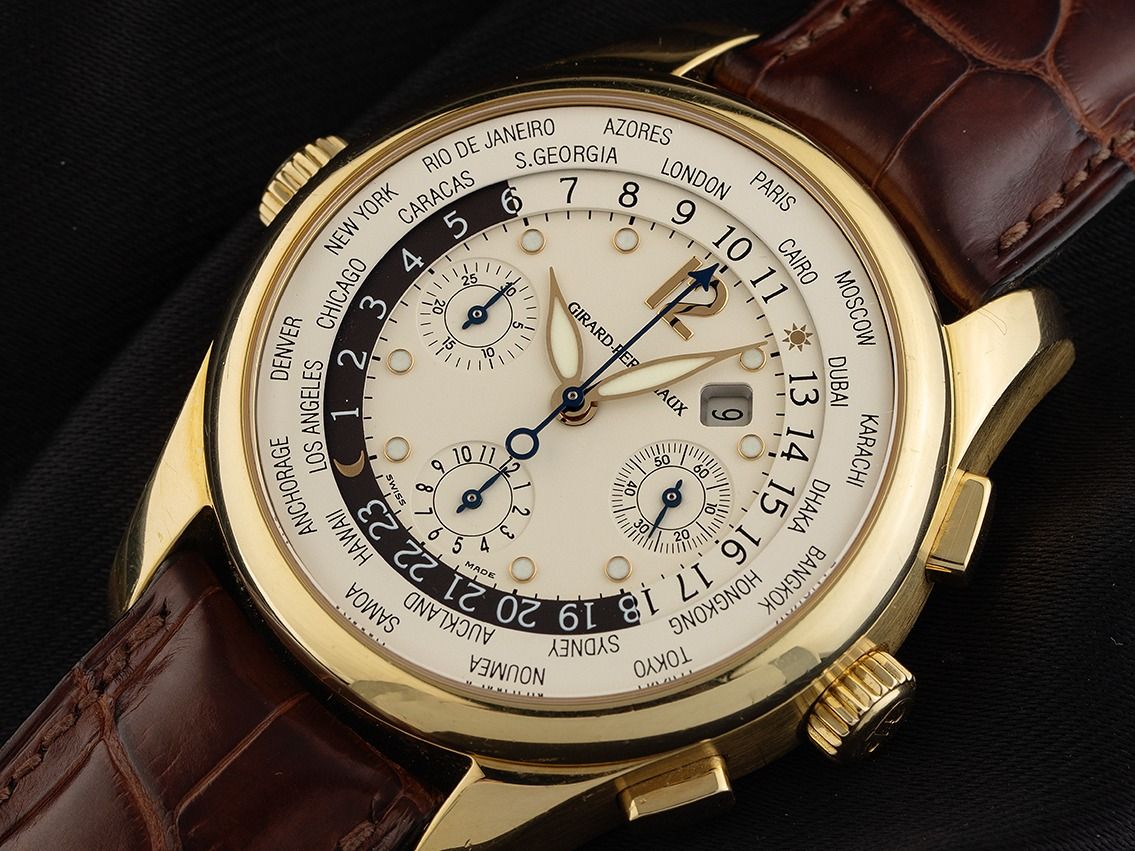 Girard Perregaux Traveller WW.TC World Timer 18kt Gelbgold Automatik Chronograph Armband Leder Faltschließe