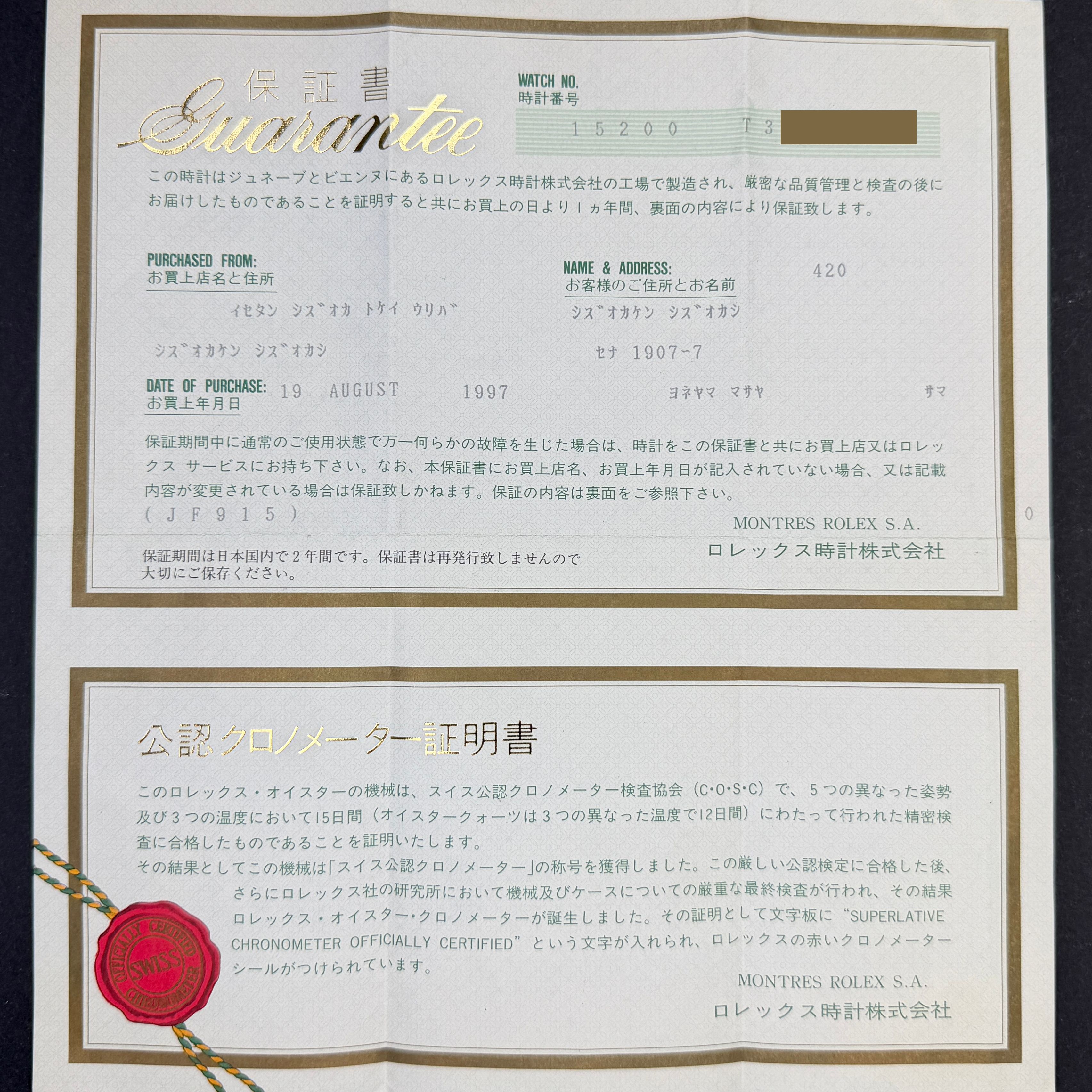 This Rolex Oyster Perpetual Date 15200 features a Silver dial and is crafted from stainless steel, with a production year of 1996.Case No: T37XXXX