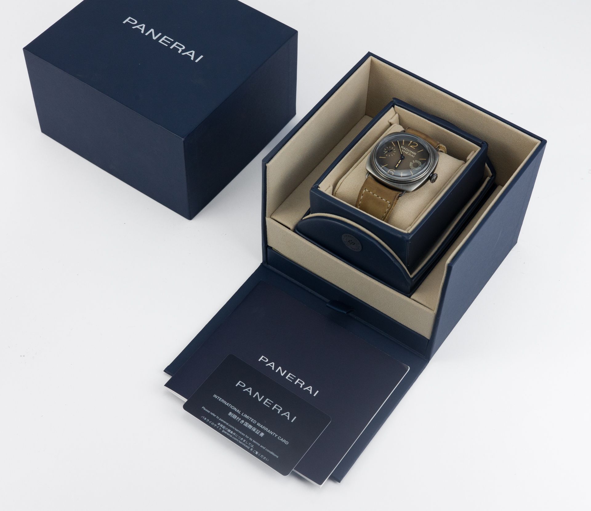 Der erste Radiomir wurde bereits 1938 produziert und konnte sich schnell als robustes und zuverlässiges Zeitmessgerät etablieren, was ihm ermöglichte, die offizielle Uhr der italienischen Kommandos und Spezialkräfte zu werden. Die modernen Radiomir-Modelle sind in zwei von Panerais Kollektionen – Historic und Contemporary – vertreten, und das angebotene Modell wurde 2023 eingeführt, um den historischen Modellen der Marke in einer zeitgenössischen Interpretation, jedoch mit einem Retro-Design, Tribut zu zollen.