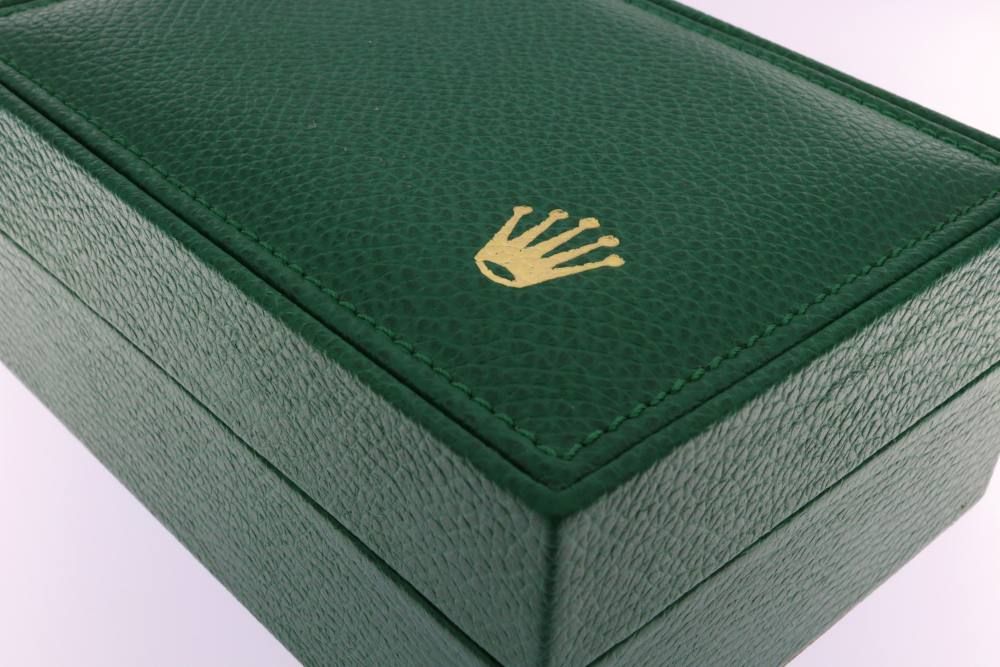 - Leichte Gebrauchsspuren wie feine Kratzer oder kleine Oberflächenkratzer. Gehäuse, Lünette und Armband behalten ihre scharfen Kanten und die ursprüngliche Form. Kann professionell poliert worden sein, ohne die originalen Konturen zu verändern. Mechanisch voll funktionsfähig.
