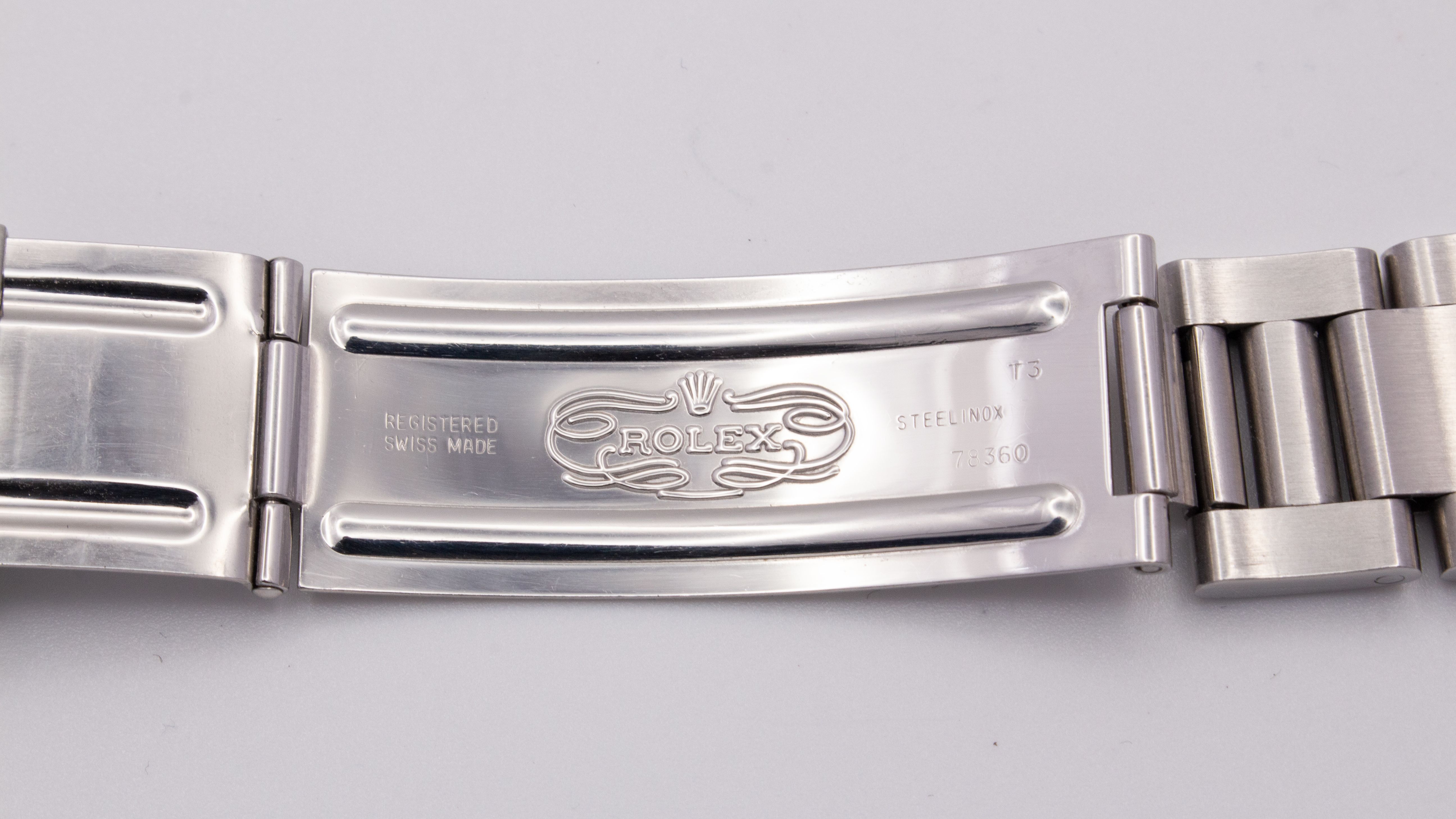 Das Oyster-Band ist vollständig mit 13 Gliedern und befindet sich in entsprechend gepflegtem Zustand. Der Schließencode T5 (Mai 1995) passt zeitlich hervorragend zur späten S-Serie (Ende 1994) des Gehäuses und bestätigt die stimmige, periodenkorrekte Kombination.